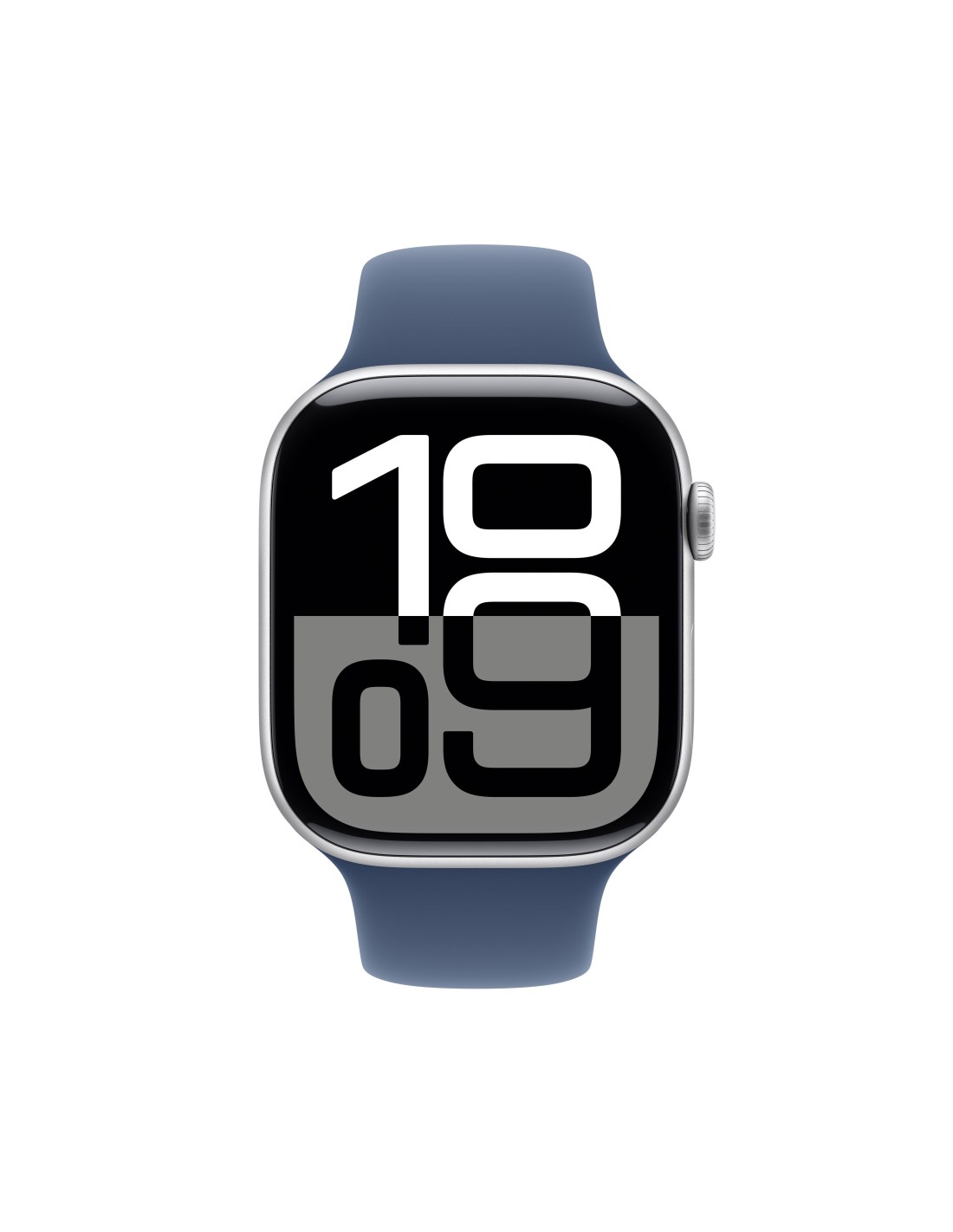 Apple Watch Series 10 . Tecnología de visualización: OLED, Resolución de la pantalla: 416 x 496 Pixeles, Pantalla táctil. Memoria flash: 64 GB. Wifi. GPS (satélite). Peso: 35,3 g. Humedad: resistente al agua hasta: 50 m, Material de la banda: Caucho, Color de banda: Azul, Tamaño de banda: S/M. Sistema operativo instalado: watchOS 11