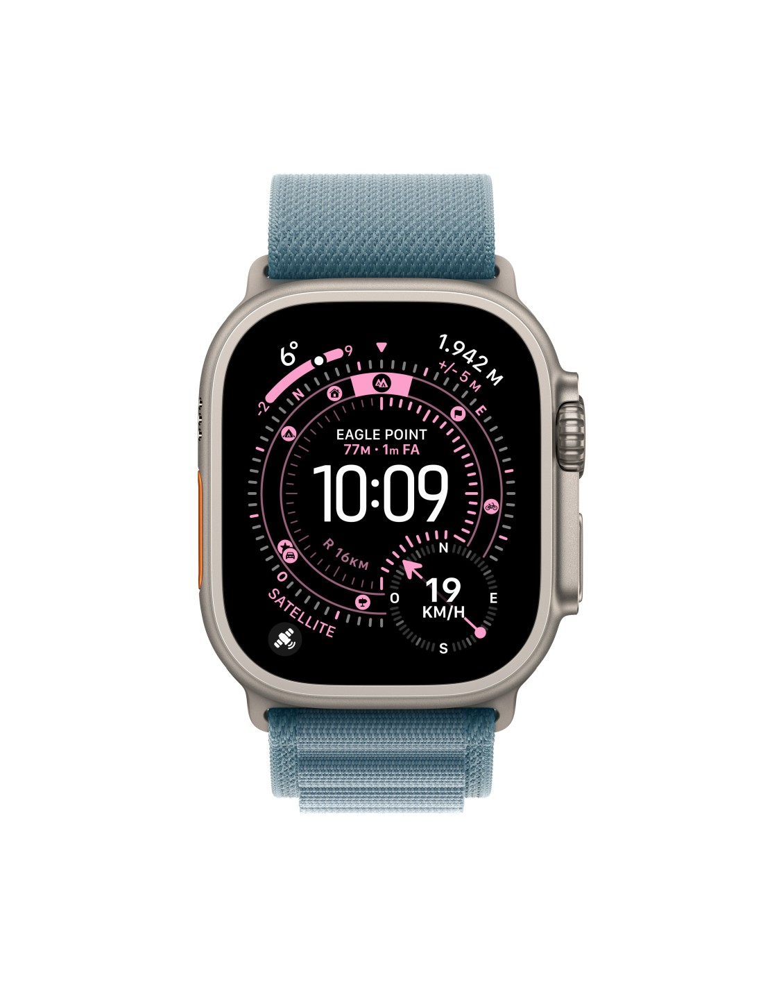 Apple Watch Ultra 3 . Tecnología de visualización: OLED, Resolución de la pantalla: 422 x 514 Pixeles, Pantalla táctil. Memoria flash: 64 GB. Wifi. GPS (satélite). Peso: 61,6 g. Humedad: resistente al agua hasta: 100 m, Color de banda: Azul, Tamaño de banda: M. Sistema operativo instalado: watchOS 11