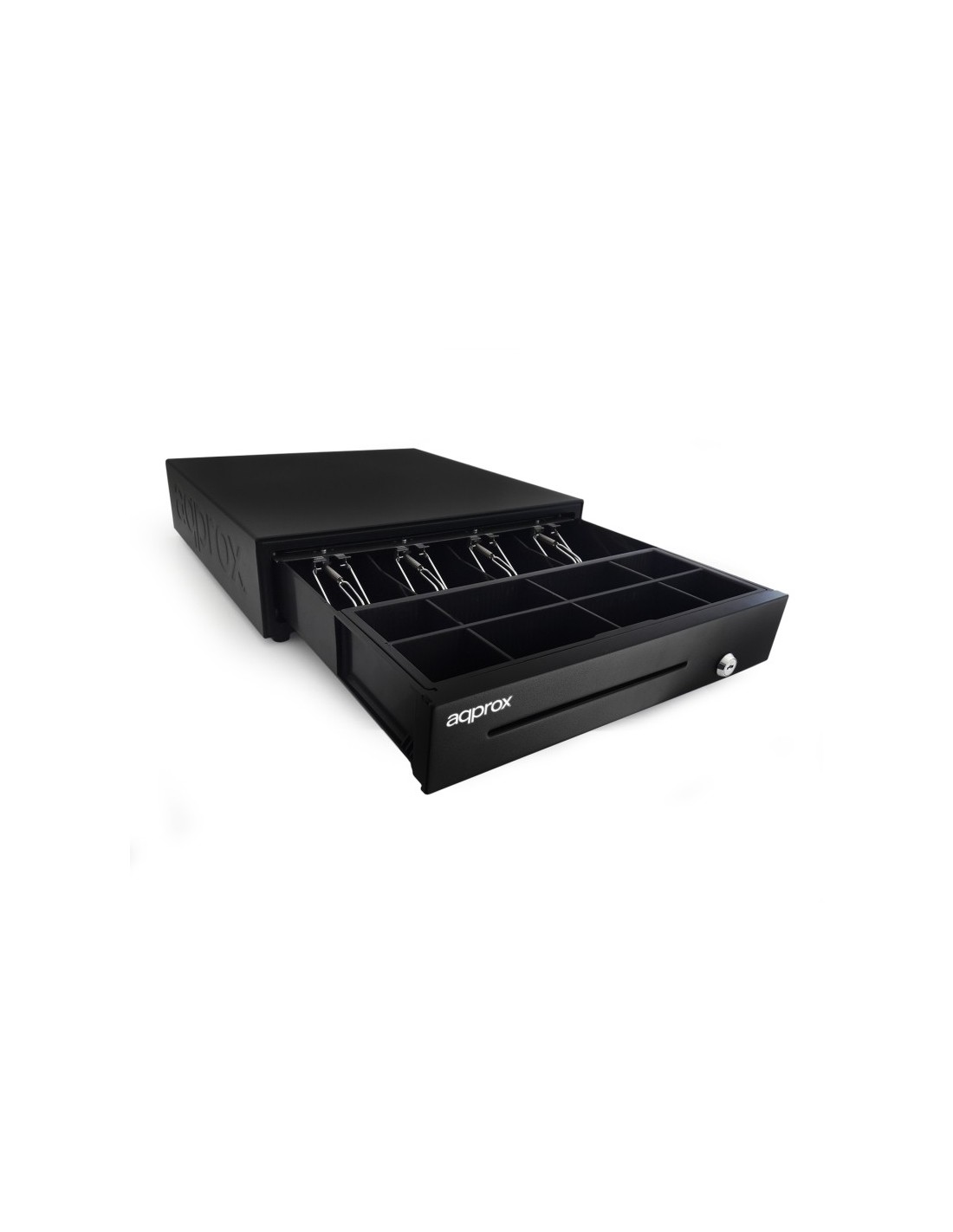 Approx appCASH01USB. Tipo de producto: Cajón de efectivo electrónico, Color del producto: Negro, Tipo de fuente de alimentación: CC. Ancho: 410 mm, Profundidad: 420 mm, Altura: 100 mm