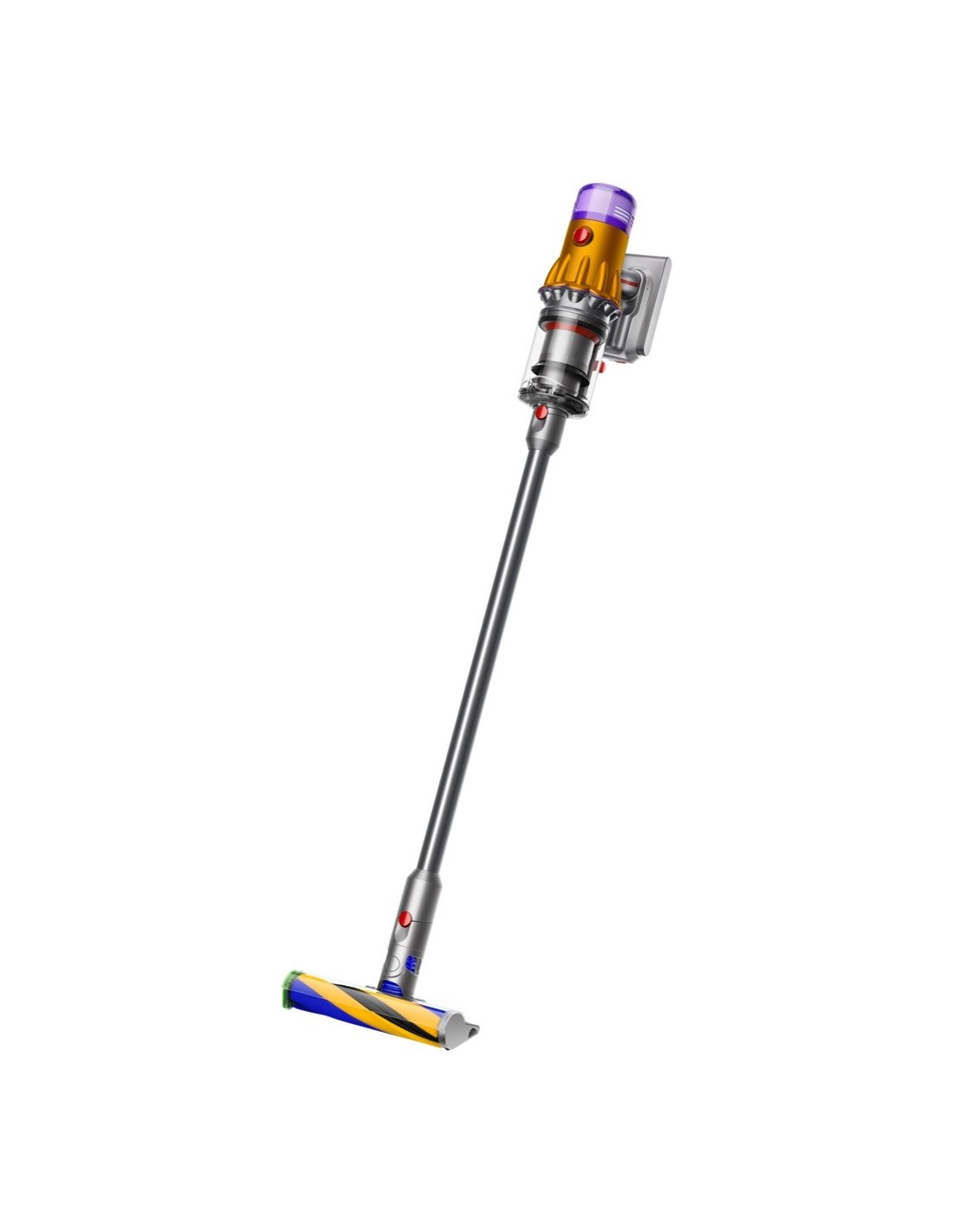 Dyson V12 Detect Slim Absolute. Tipo de producto: Aspiradora escoba 2 en 1, Tipo de depósito: Sin bolsa, Color del producto: Níquel, Amarillo. Tipo de limpiador: Secar, Método de separación de la suciedad: Ciclónico, Superficies de limpieza: Alfombra, Suelo duro, Soft floor. Fuente de energía: Batería, Potencia máx. de entrada: 545 W, Voltaje de la pila: 29,4 V. Peso del paquete: 5,34 kg. Ancho: 250 mm, Profundidad: 252 mm, Altura: 1234 mm