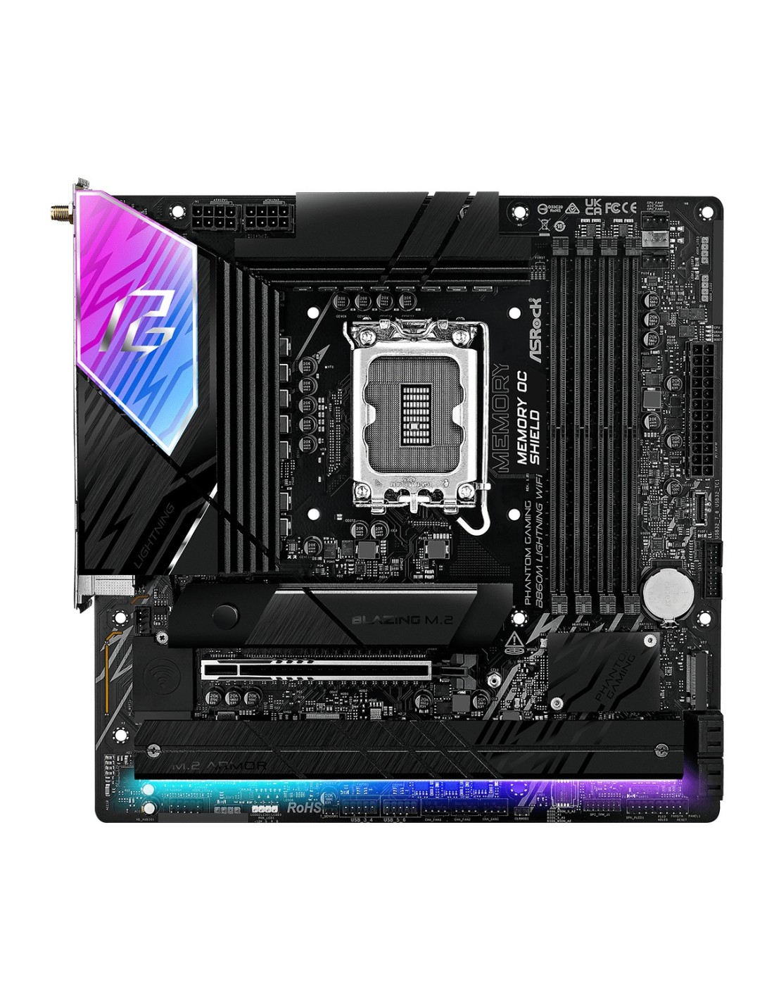 Asrock B860M Lightning WiFi. Fabricante de procesador: Intel, Socket de procesador: LGA 1851 (Socket V1), Procesador compatible: Intel Core Ultra (Series 2). tipos de memoria compatibles: DDR5-SDRAM, Memoria interna máxima: 256 GB, Tipo de ranuras de memoria: DIMM. Interfaces de disco de almacenamiento soportados: M.2, SATA III, Tipos de unidades de almacenamiento admitidas: HDD & SSD, Niveles RAID: 0, 1, 5, 10. Tipo de interfaz ethernet: 2.5 Gigabit Ethernet, Controlador LAN: Killer E3100G, Estándar Wi-Fi: Wi-Fi 6E (802.11ax). Componente para: PC, Factor de forma: micro ATX, Familia del chipset: Intel