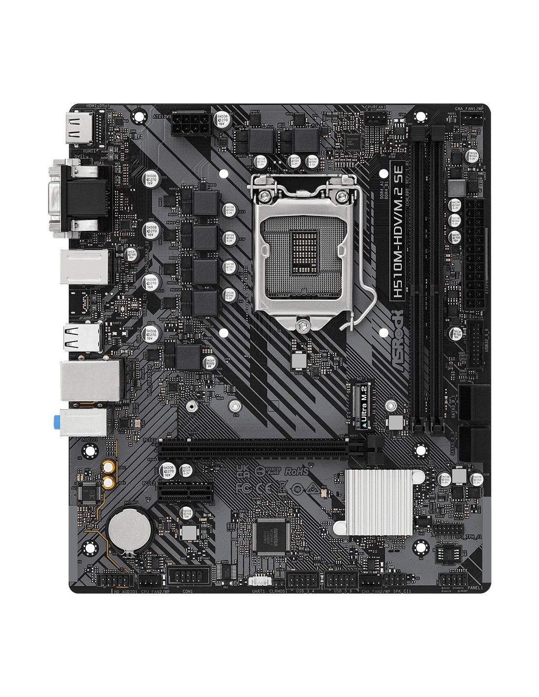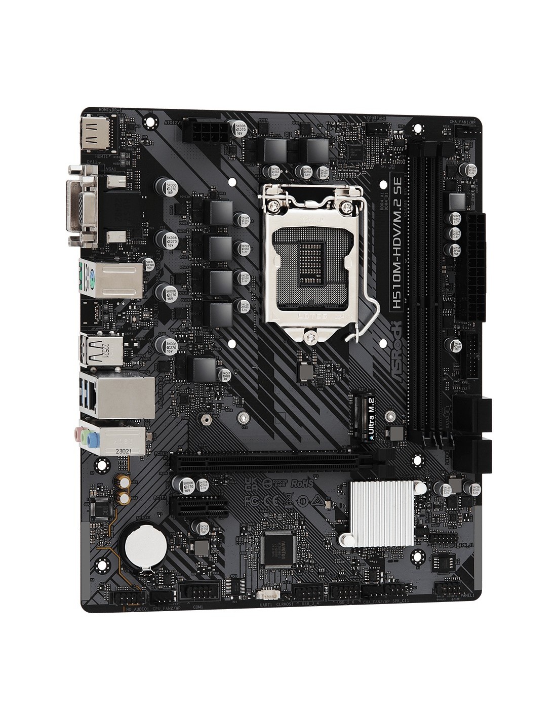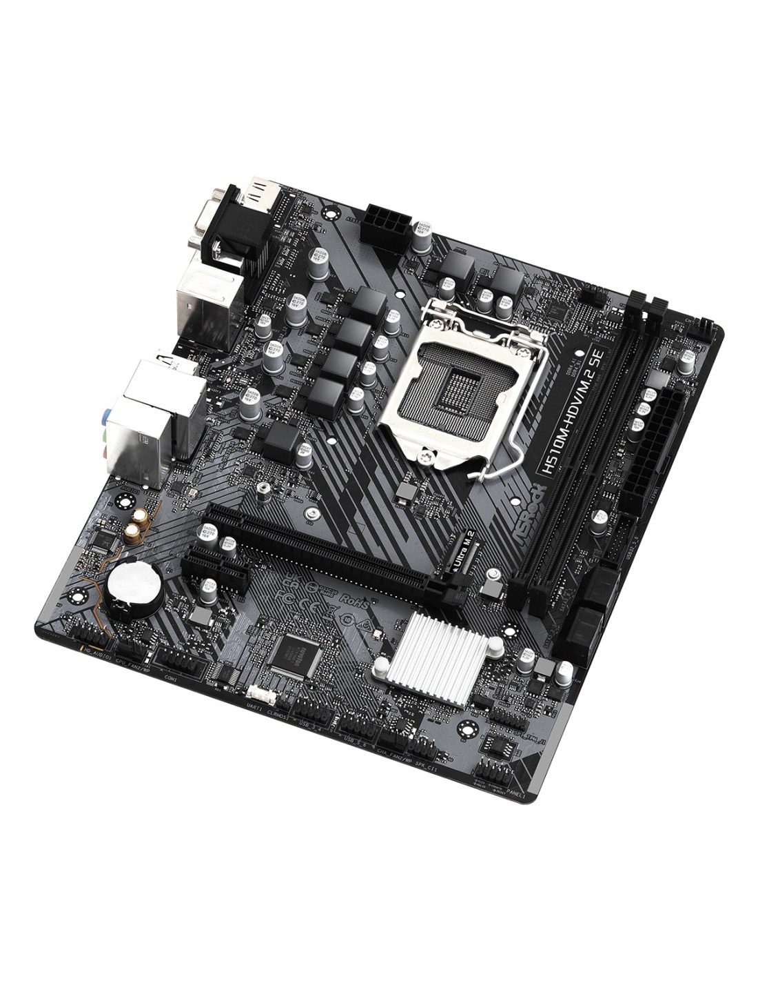 Asrock H510M-HDV/M.2 SE. Fabricante de procesador: Intel, Socket de procesador: LGA 1200 (Socket H5). tipos de memoria compatibles: DDR4-SDRAM, Memoria interna máxima: 64 GB, Tipo de ranuras de memoria: DIMM. Interfaces de disco de almacenamiento soportados: PCI Express 3.0, SATA III, Tipos de unidades de almacenamiento admitidas: HDD & SSD, Niveles RAID: 0, 1, 5, 10. Versión HDMI: 1.4/2.0, Conector USB: USB tipo A. Tipo de interfaz ethernet: Gigabit Ethernet, Controlador LAN: Realtek 8111H