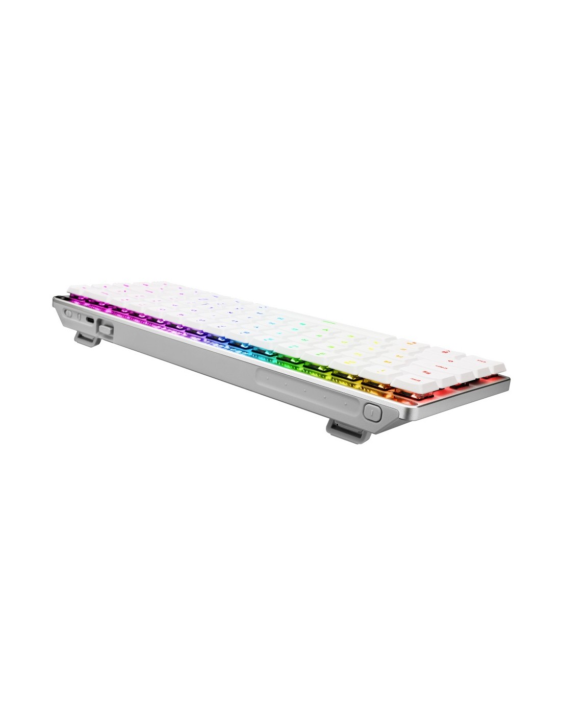 El Falchion RX Low Profile tiene dos pares de pies de teclado de diferentes alturas, lo que le proporciona tres ángulos de inclinación ergonómicos para adaptarse a tus preferencias.