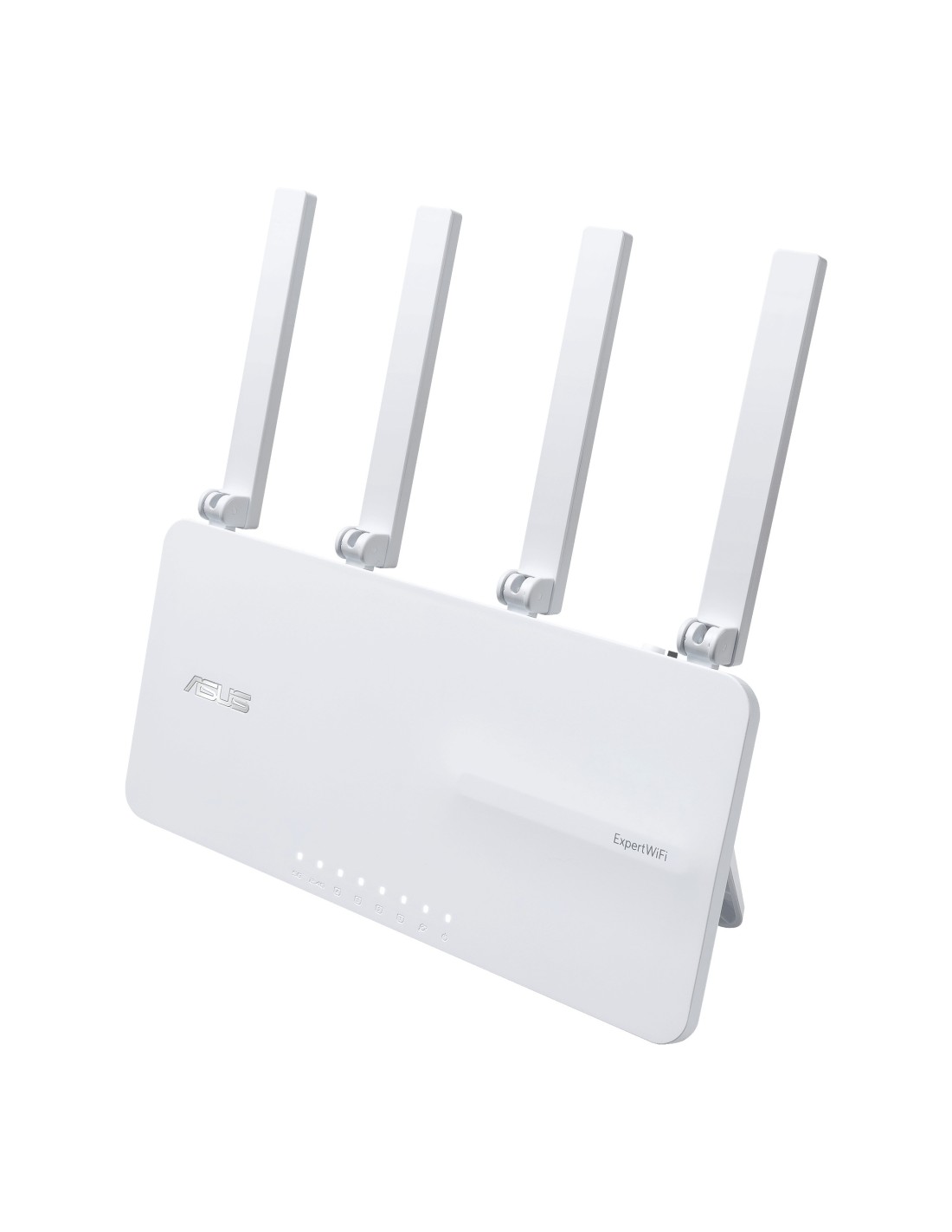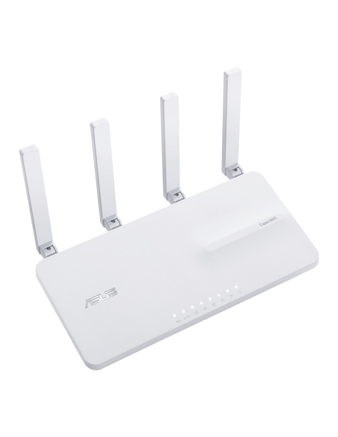 ASUS EBR63 – Expert WiFi. Tipo de conexión WAN: RJ-45. Banda Wi-Fi: Doble banda (2,4 GHz / 5 GHz), Estándar Wi-Fi: Wi-Fi 6 (802.11ax), Tasa de transferencia de datos WLAN (máx.): 2402 Mbit/s. Tipo de interfaz Ethernet LAN: Gigabit Ethernet, Ethernet LAN, velocidad de transferencia de datos: 10,100,1000 Mbit/s, Tecnología de cableado: 10/100/1000Base-T(X). Algoritmos de seguridad soportados: SSH, WPS. Tipo de producto: Router de sobremesa, Color del producto: Blanco, Indicadores LED: Actividad, LAN, Poder, WAN