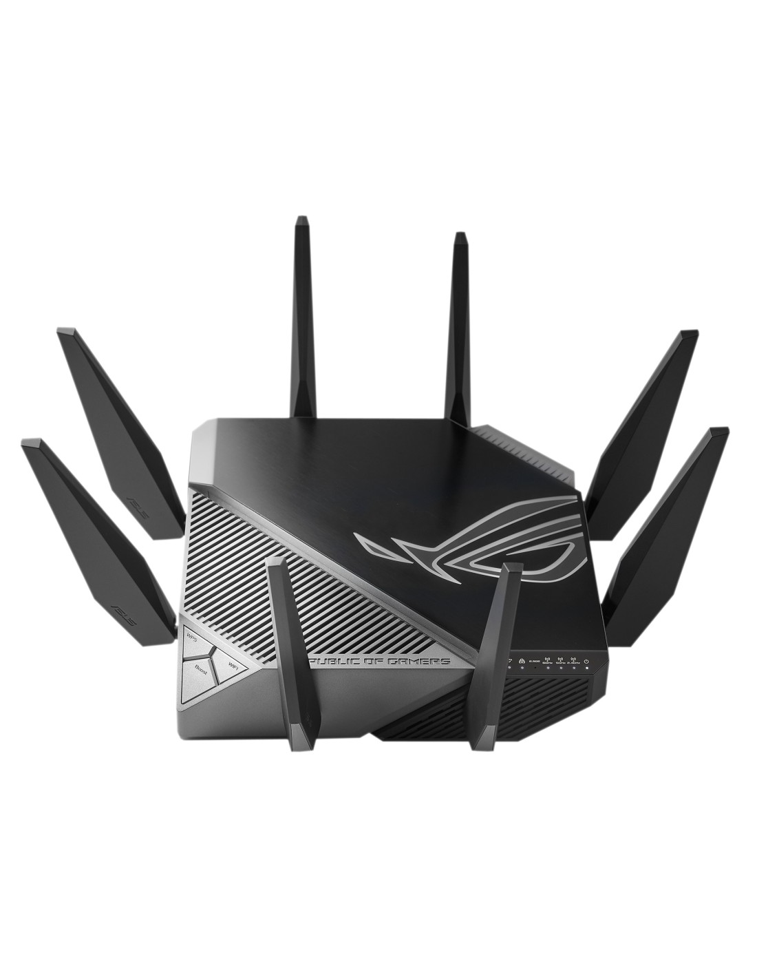 ASUS GT-AXE11000. Tipo de conexión WAN: RJ-45. Banda Wi-Fi: Tribanda (2.4 GHz / 5 GHz / 6 GHz), Estándar Wi-Fi: Wi-Fi 6 (802.11ax), Tasa de transferencia de datos WLAN (máx.): 4804 Mbit/s. Tipo de interfaz Ethernet LAN: Gigabit Ethernet, Ethernet LAN, velocidad de transferencia de datos: 10,100,1000,2500 Mbit/s, Tecnología de cableado: 10/100/1000Base-T(X). Algoritmos de seguridad soportados: SSH, WPA-Enterprise, WPA2-Enterprise, WPA3, WPS, NAT, funcionalidad: PPTP, L2TP, IPSec, RTSP, H.323, SIP Passthrough, PPPoE relay. Tipo de producto: Router de sobremesa, Color del producto: Negro, Indicadores LED: LAN, Poder, Estado, WAN