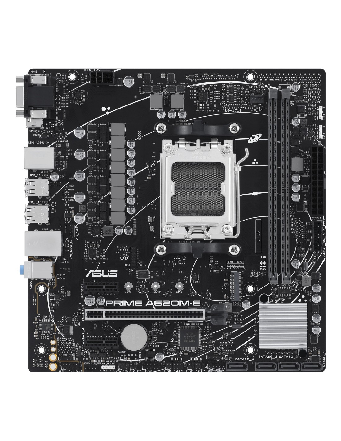 ASUS PRIME A620M-E-CSM. Fabricante de procesador: AMD, Socket de procesador: Zócalo AM5, Procesador compatible: AMD Ryzen 7000 Series. tipos de memoria compatibles: DDR5-SDRAM, Memoria interna máxima: 96 GB, Tipo de ranuras de memoria: DIMM. Interfaces de disco de almacenamiento soportados: M.2, SATA III, Tipos de unidades de almacenamiento admitidas: HDD & SSD, Niveles RAID: 0, 1, 10. Tipo de interfaz ethernet: Gigabit Ethernet. Componente para: PC, Factor de forma: micro ATX, Familia del chipset: AMD