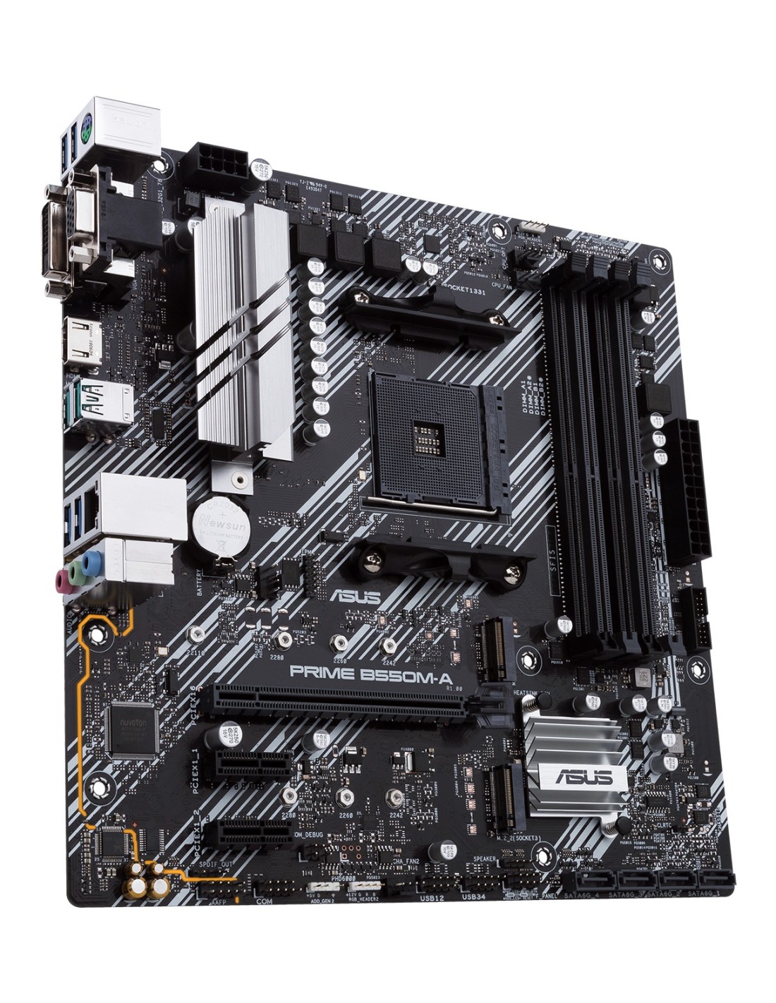 ASUS Prime B550M-A/CSM. Fabricante de procesador: AMD, Socket de procesador: Zócalo AM4, Procesador compatible: AMD Ryzen 3000 Series. tipos de memoria compatibles: DDR4-SDRAM, Memoria interna máxima: 128 GB, Tipo de ranuras de memoria: DIMM. Interfaces de disco de almacenamiento soportados: M.2, SATA III. Tipo de interfaz ethernet: Gigabit Ethernet, Controlador LAN: Realtek RTL8111H. Componente para: PC, Factor de forma: micro ATX, Familia del chipset: AMD