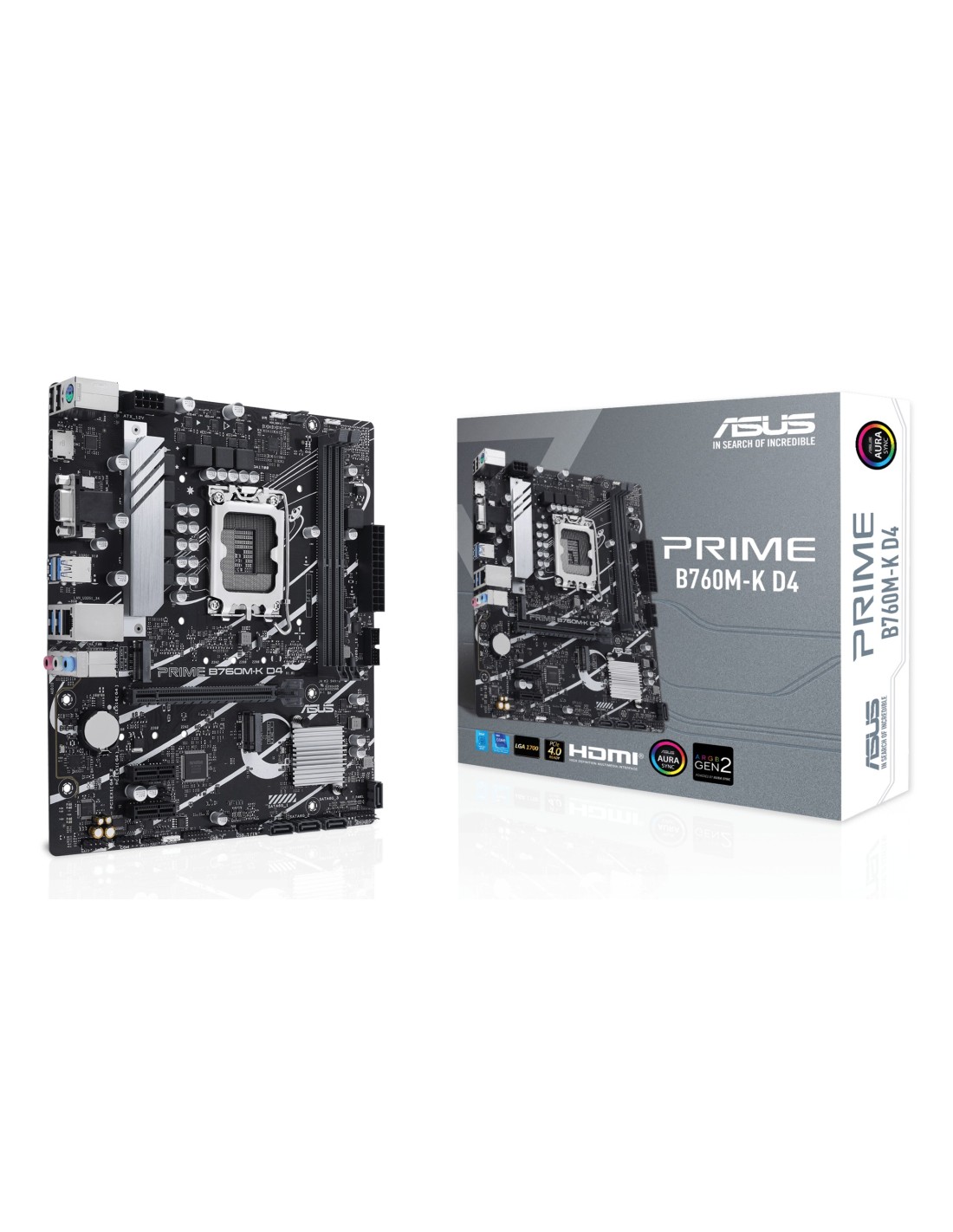 ASUS PRIME B760M-K D4, Intel, LGA 1700, Intel® Celeron®, Intel® Core™ i3, Intel® Core™ i5, Intel® Core™ i7, Intel® Core™ i9,..., LGA 1700, DDR4-SDRAM, 64 GB