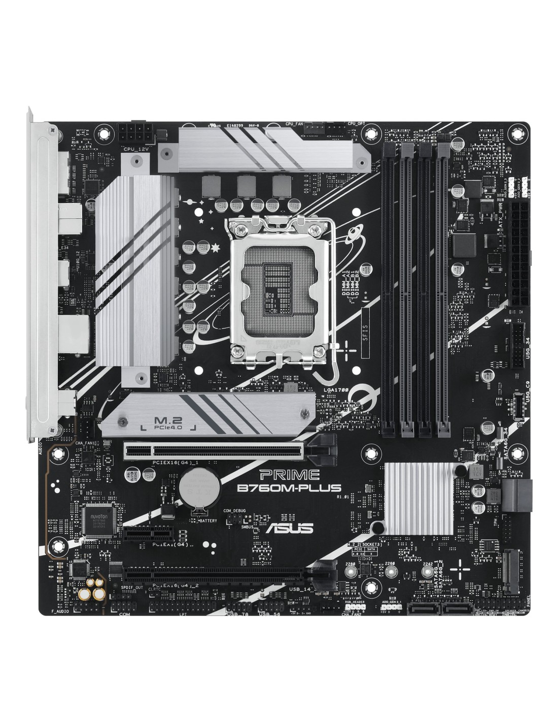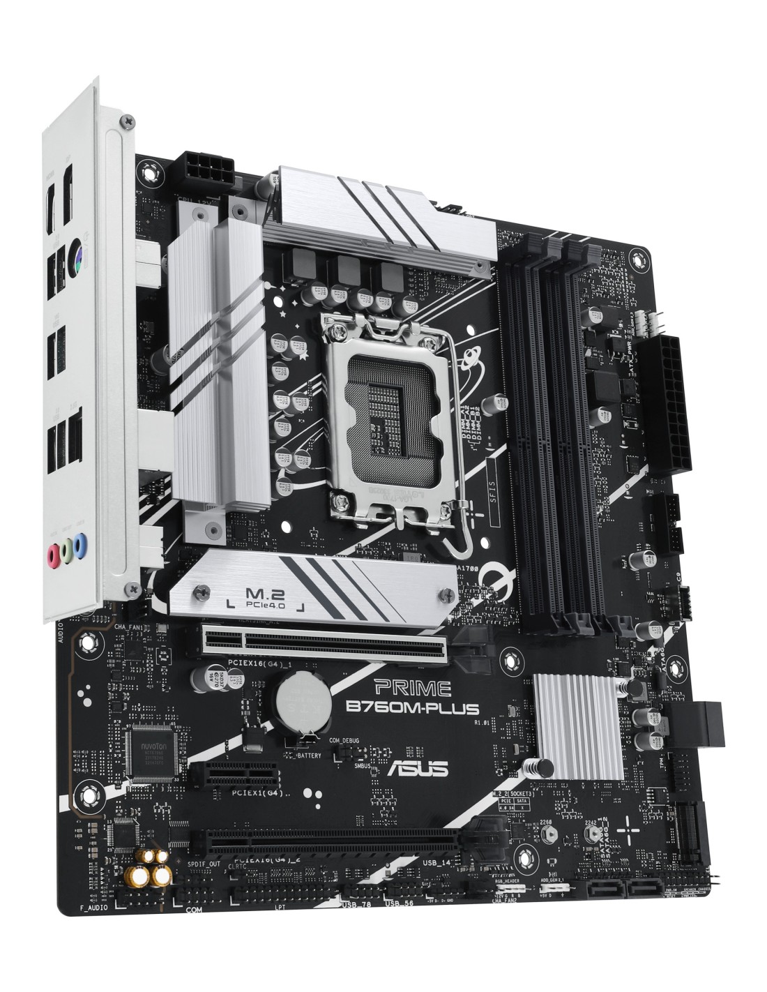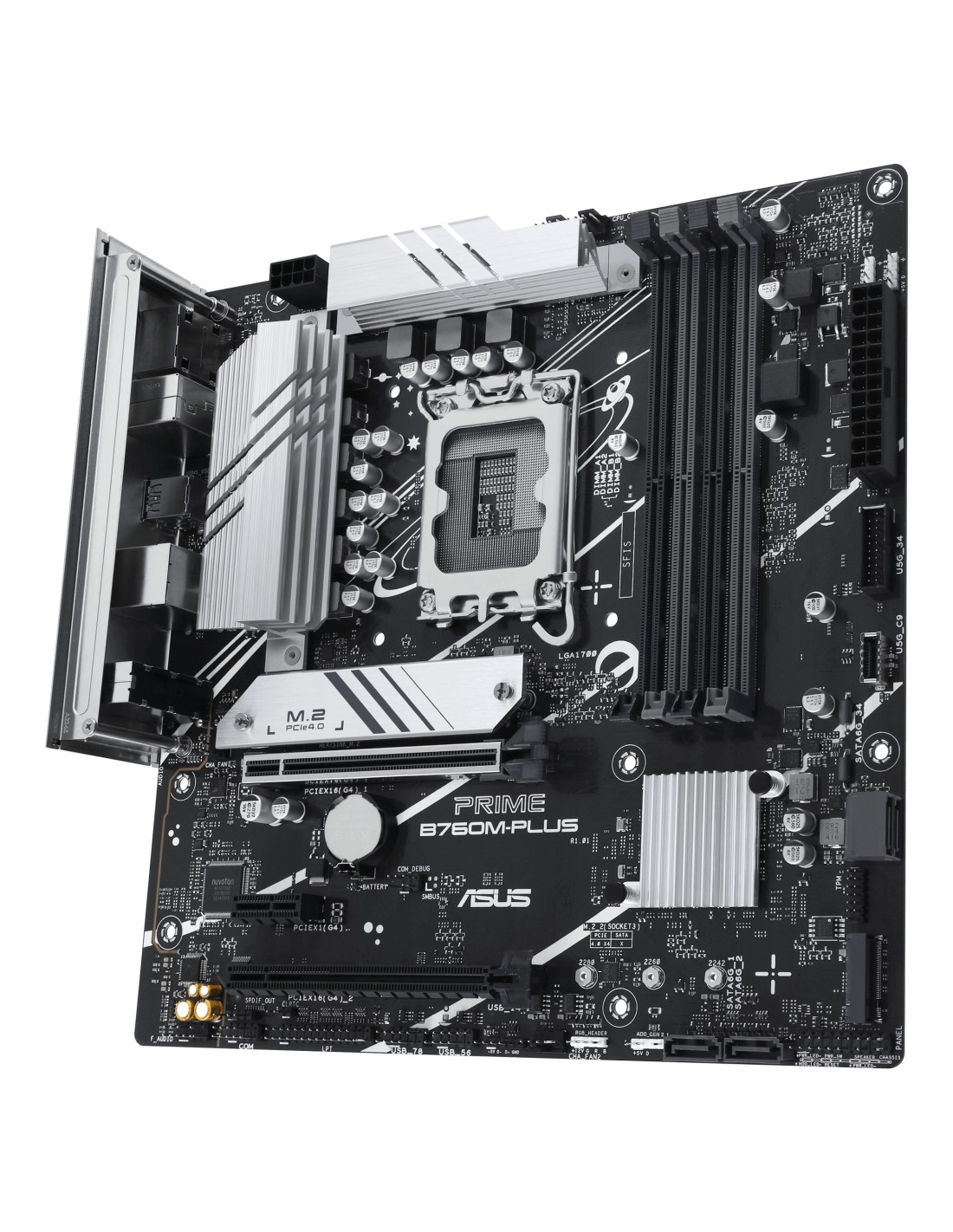 ASUS PRIME B760M-PLUS. Fabricante de procesador: Intel, Socket de procesador: LGA 1700, Procesador compatible: Intel® Celeron®, Intel® Pentium® Gold, Intel® Core™ i3, Intel® Core™ i5, Intel® Core™.... tipos de memoria compatibles: DDR5-SDRAM, Memoria interna máxima: 192 GB, Tipo de ranuras de memoria: DIMM. Interfaces de disco de almacenamiento soportados: M.2, SATA III, Tipos de unidades de almacenamiento admitidas: HDD & SSD, Niveles RAID: 0, 1, 5, 10. Tipo de interfaz ethernet: 2.5 Gigabit Ethernet. Componente para: PC, Factor de forma: micro ATX, Familia del chipset: Intel