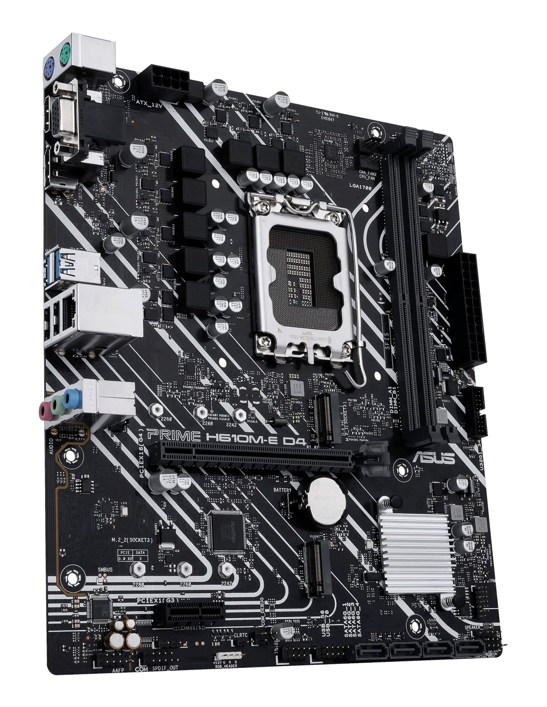 ASUS PRIME H610M-E D4-CSM, Intel, LGA 1700, Intel® Celeron®, Intel® Core™ i3, Intel® Core™ i5, Intel® Core™ i7, Intel® Core™ i9, Intel® Pentium®, LGA 1700, DDR4-SDRAM, 64 GB