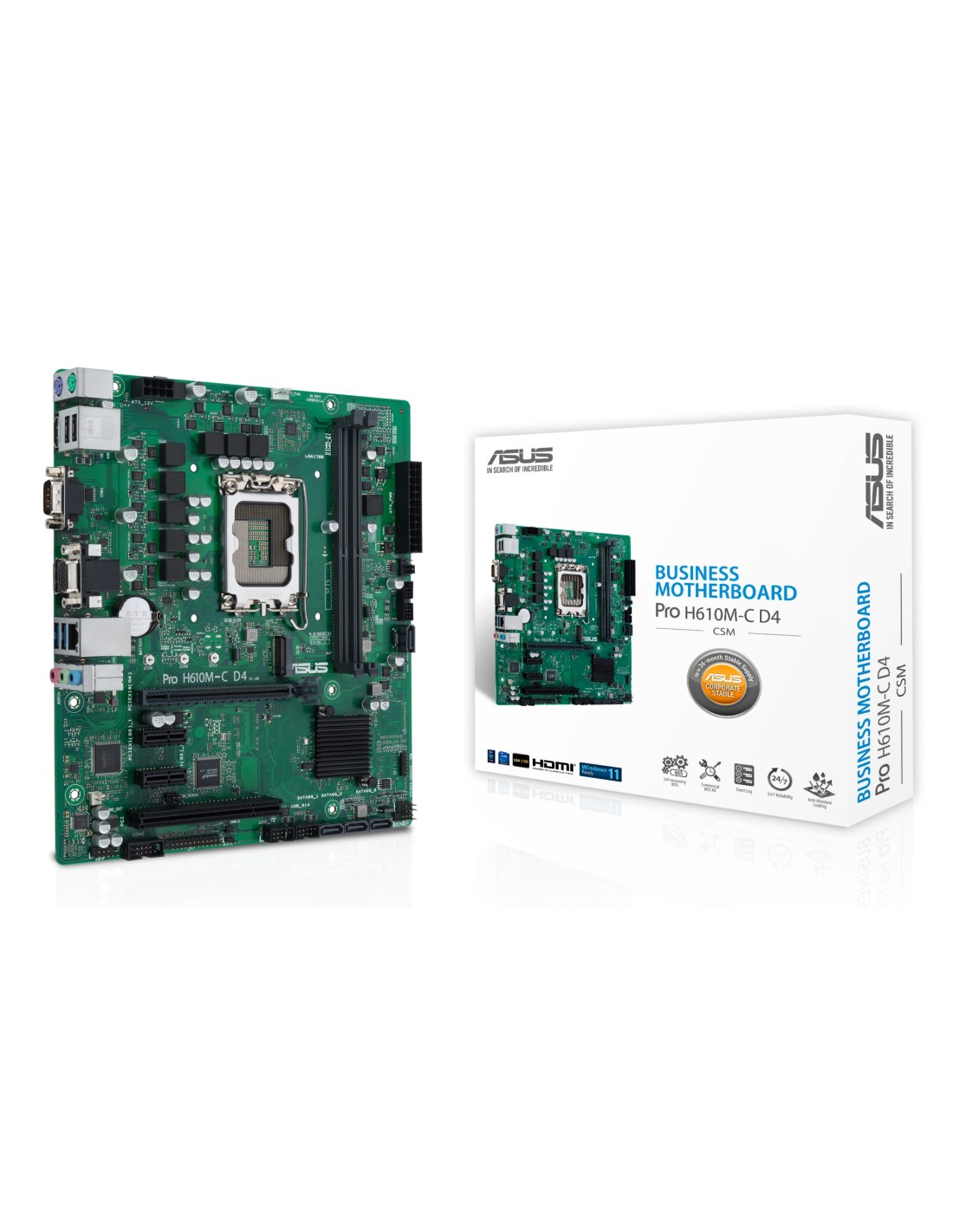 ASUS PRO H610M-C D4-CSM, Intel, LGA 1700, Intel® Celeron®, Intel® Core™ i3, Intel® Core™ i5, Intel® Core™ i7, Intel® Core™ i9, Intel® Pentium®, DDR4-SDRAM, 64 GB, DIMM