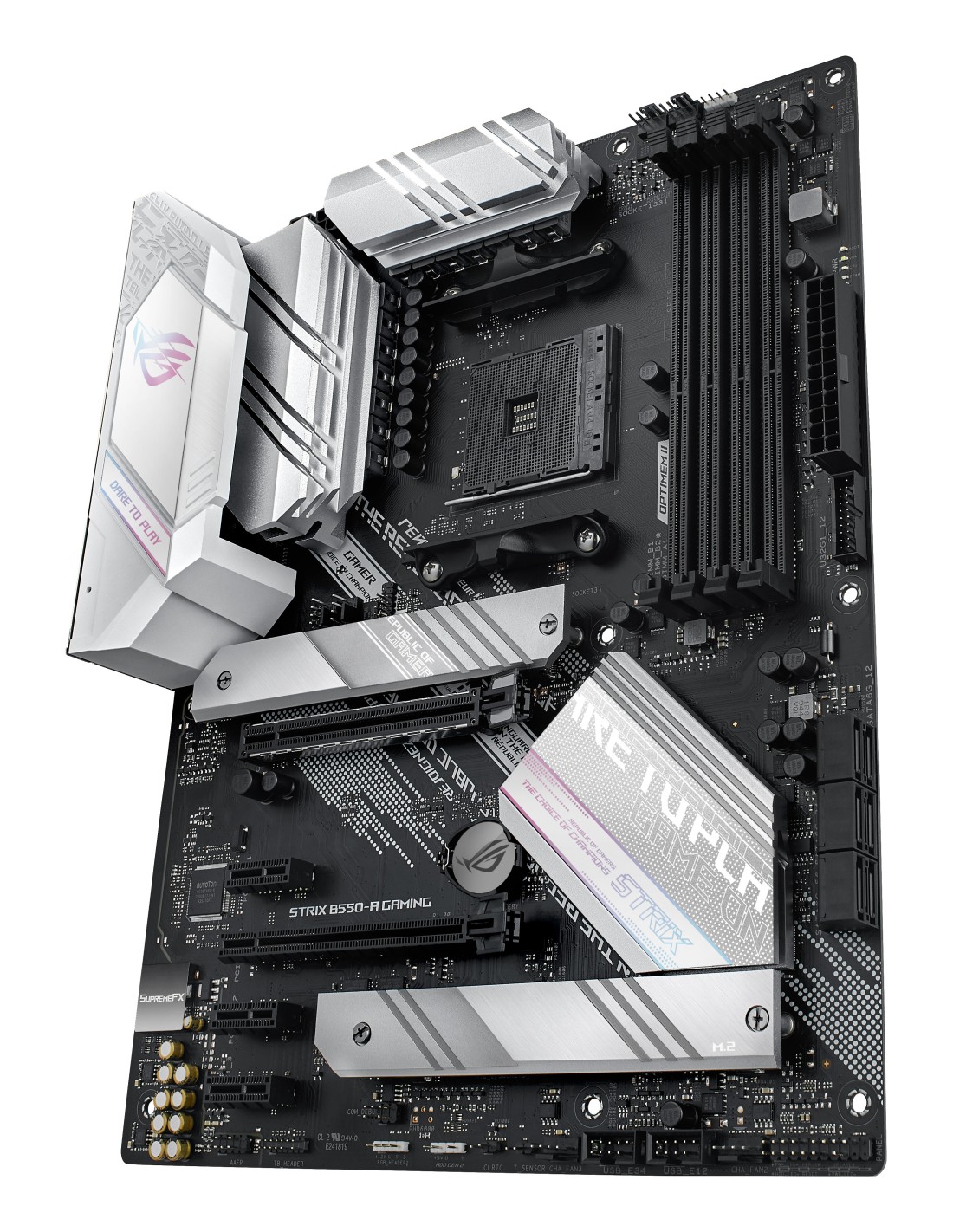 ASUS ROG STRIX B550-A GAMING. Fabricante de procesador: AMD, Socket de procesador: Zócalo AM4, Procesador compatible: AMD Ryzen™ 3. tipos de memoria compatibles: DDR4-SDRAM, Memoria interna máxima: 128 GB, Tipo de ranuras de memoria: DIMM. Interfaces de disco de almacenamiento soportados: PCI Express 3.0, Niveles RAID: 0, 1, 10. Soporte para proceso paralelo: 2-Way CrossFireX. Componente para: PC, Factor de forma: ATX, Familia del chipset: AMD