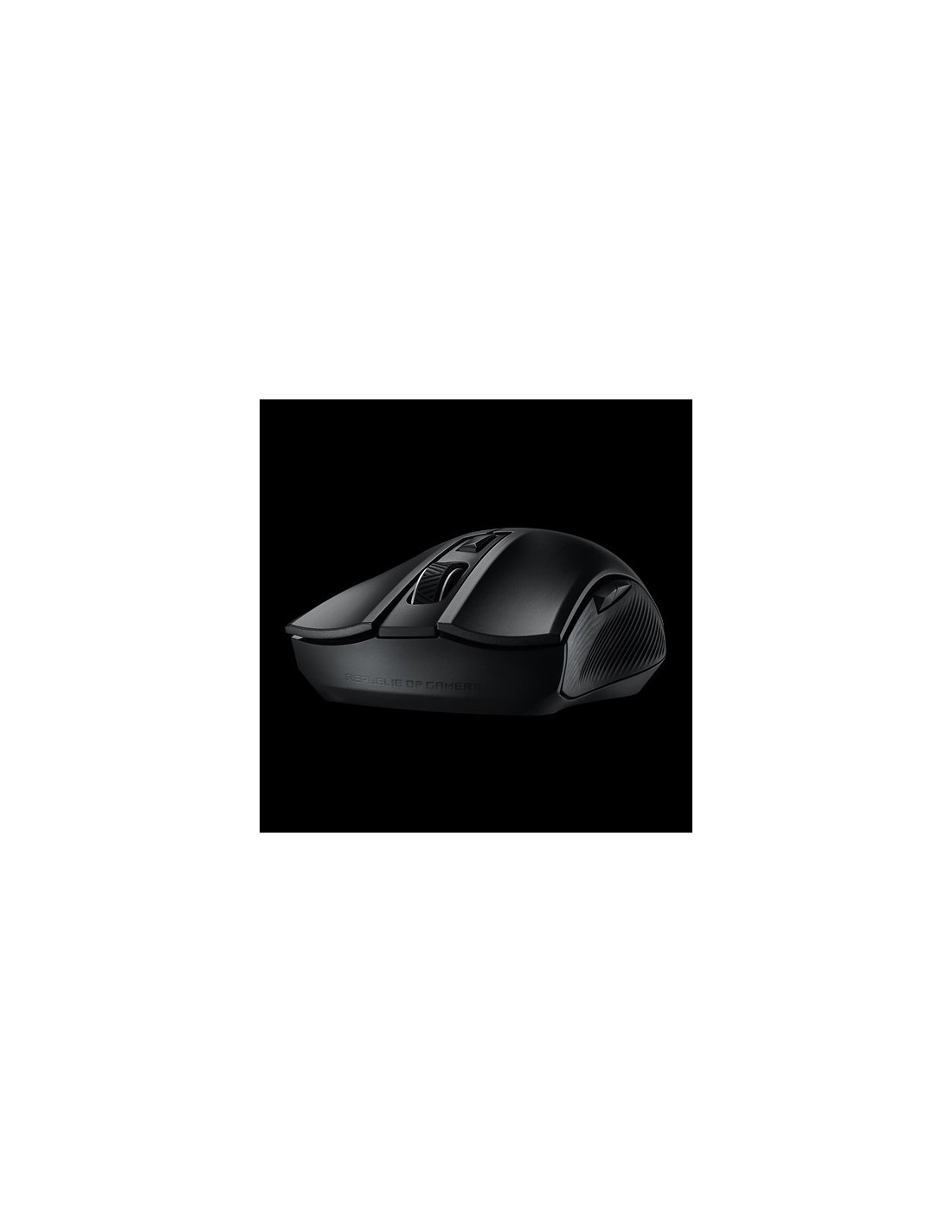ASUS ROG Strix Carry. Factor de forma: mano derecha. Tecnología de detección de movimientos: Óptico, Interfaz del dispositivo: RF Wireless + Bluetooth, Resolución de movimiento: 7200 DPI, Tipo de botones: Botones presionados, Cantidad de botones: 5, Tipo de desplazamiento: Botones. Fuente de energía: Baterías. Color del producto: Negro