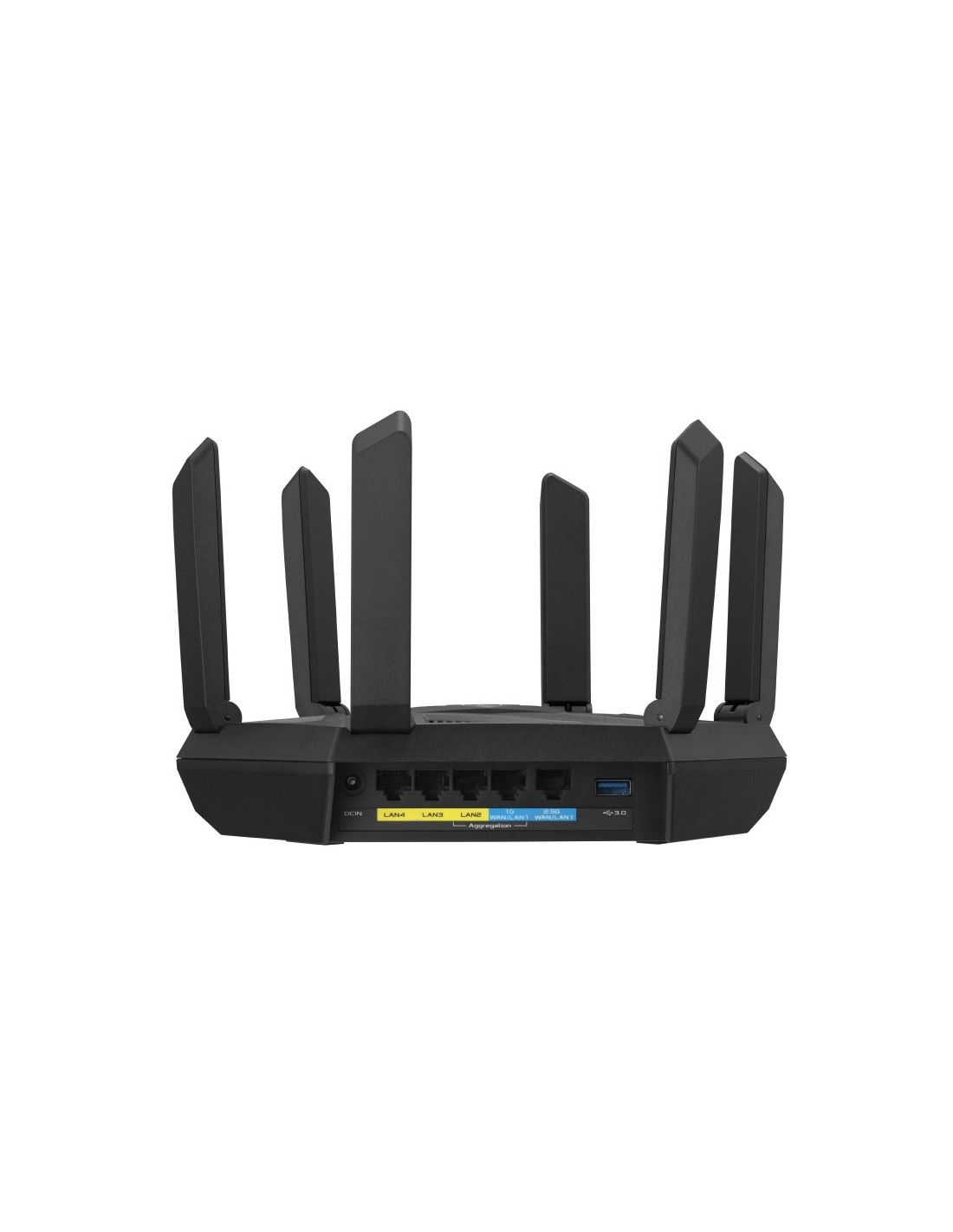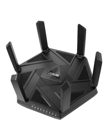 ASUS RT-AXE7800. Tipo de conexión WAN: RJ-45. Banda Wi-Fi: Tribanda (2.4 GHz / 5 GHz / 6 GHz), Estándar Wi-Fi: Wi-Fi 6E (802.11ax), Tasa de transferencia de datos WLAN (máx.): 4804 Mbit/s. Ethernet LAN, velocidad de transferencia de datos: 10,100,1000 Mbit/s, Tecnología de cableado: 10/100/1000Base-T(X), Servidor VPN: IPSec, OVPN, PPTP. Algoritmos de seguridad soportados: SSH, WPA, WPA-Enterprise, WPA2, WPA2-Enterprise, WPA3, WPS, NAT, funcionalidad: PPTP, L2TP, IPSec, RTSP, H.323, SIP Passthrough, PPPoE relay. Tipo de producto: Router de sobremesa, Color del producto: Negro, Indicadores LED: LAN, Poder, WAN