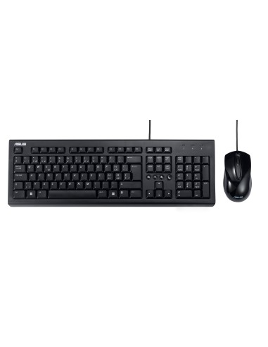 ASUS Teclado sobremesa y ratón U2000. Formato del teclado: Completo (100%), Tecnología de conectividad: Alámbrico, Interfaz del dispositivo: USB, Interruptor del teclado: Interruptor de membrana, Diseño de teclado: QWERTY. Longitud de cable: 1,5 m. Uso recomendado: Hogar / Oficina. Color del producto: Negro. Ratón incluido