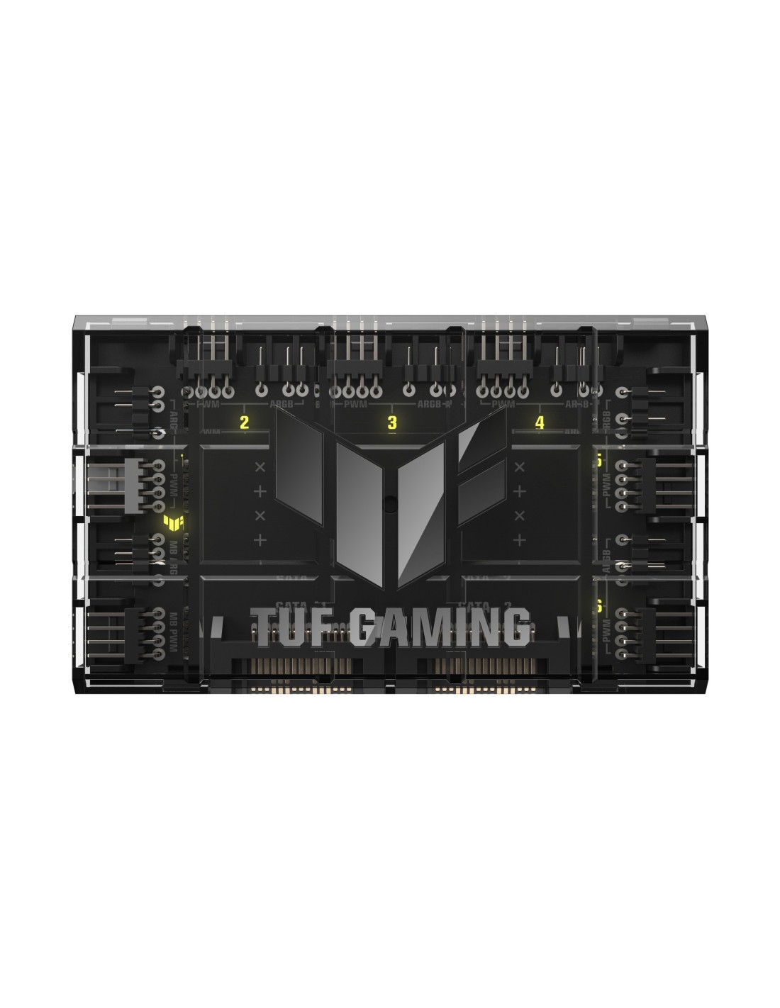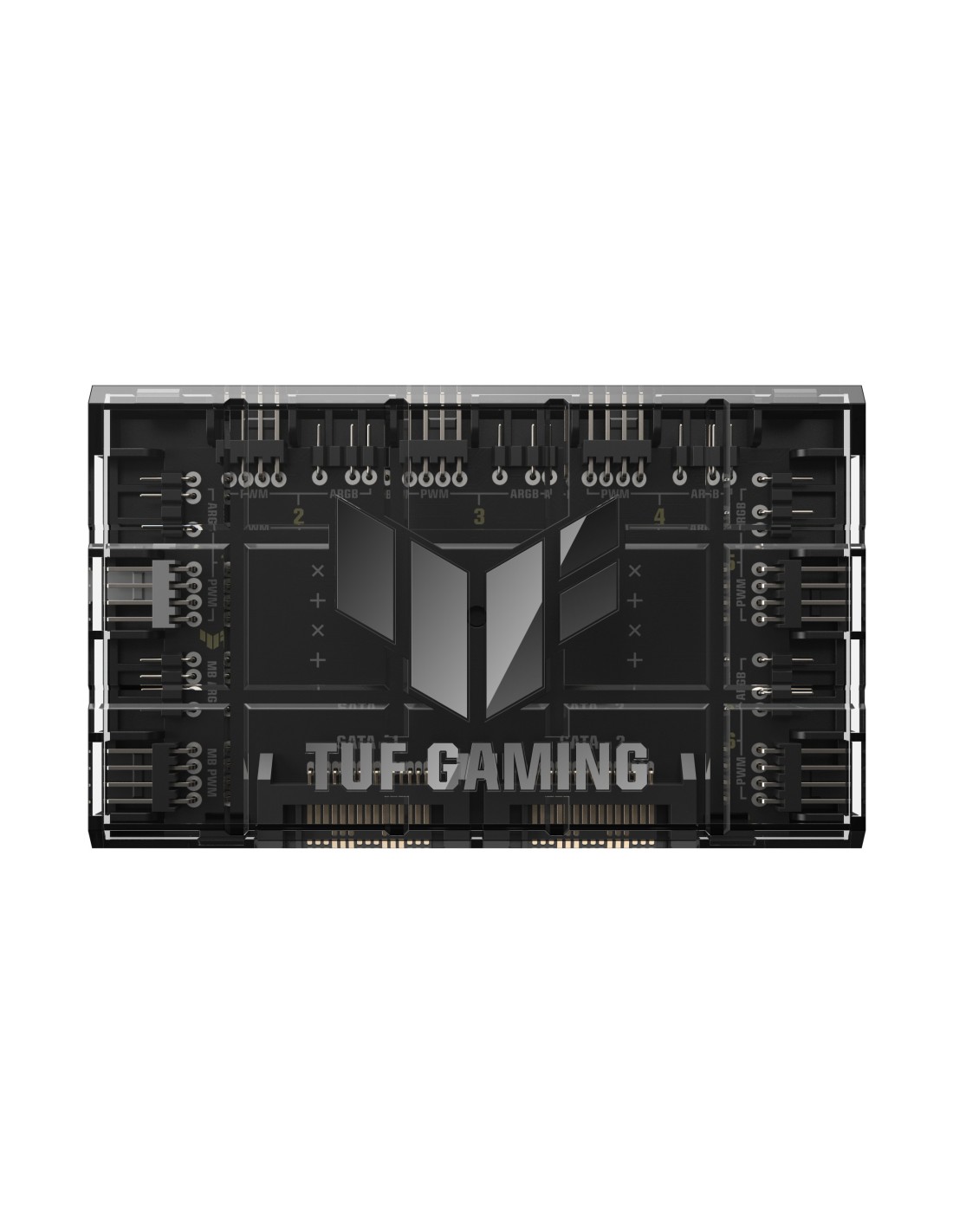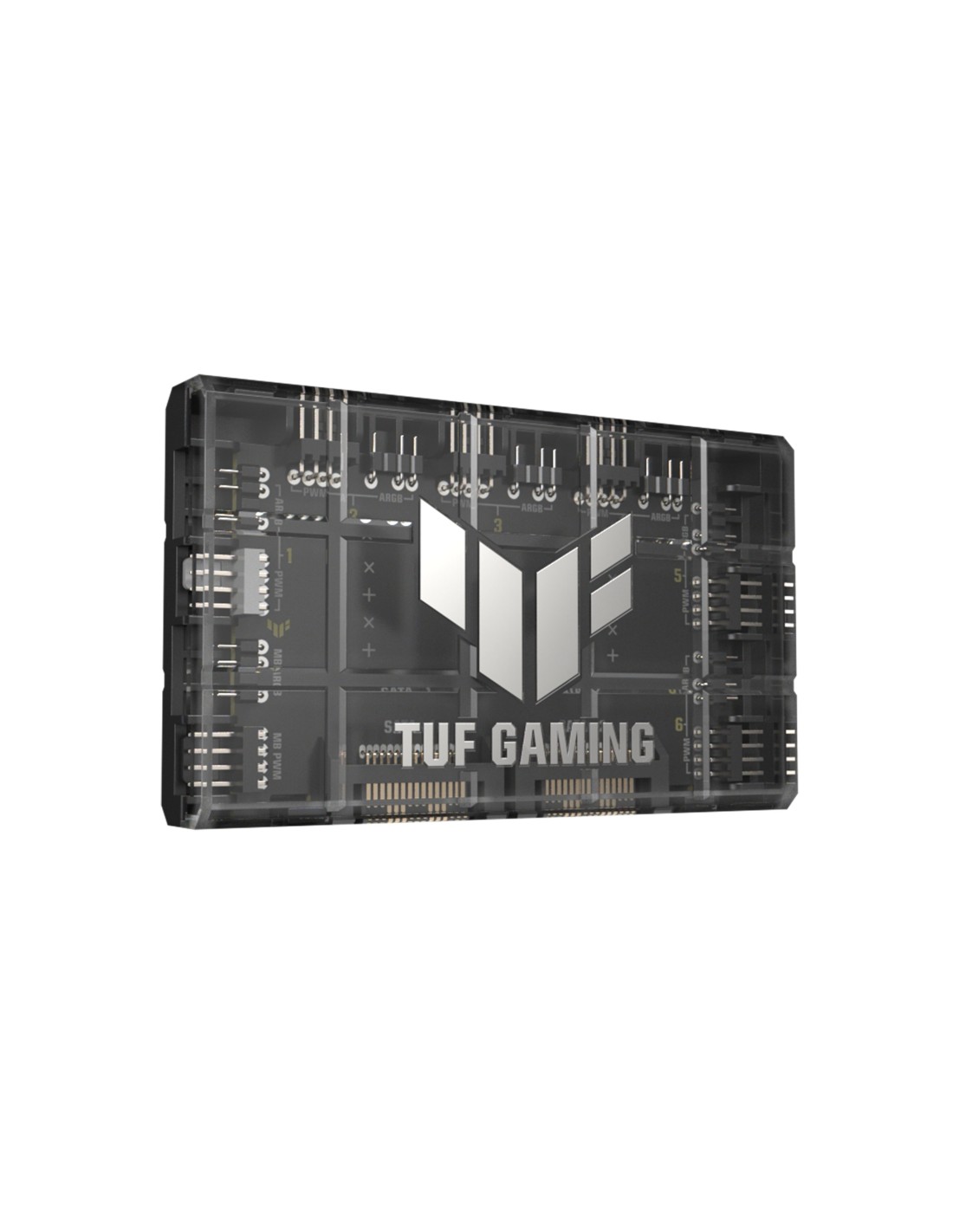 ASUS TUF Gaming ARGB PWM Fan Hub. Tipo: Controlador de ventilador, Color del producto: Negro, Conector de ventilador: 4 pines. Ancho: 115 mm, Profundidad: 69 mm, Altura: 17,7 mm