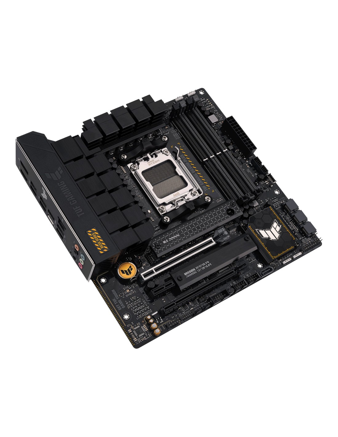 ASUS TUF GAMING B650M-PLUS. Fabricante de procesador: AMD, Socket de procesador: Zócalo AM5, Procesador compatible: AMD Ryzen 7000 Series. tipos de memoria compatibles: DDR5-SDRAM, Memoria interna máxima: 128 GB, Tipo de ranuras de memoria: DIMM. Interfaces de disco de almacenamiento soportados: M.2, SATA III, Tipos de unidades de almacenamiento admitidas: HDD & SSD, Niveles RAID: 0, 1, 10. Tipo de interfaz ethernet: 2.5 Gigabit Ethernet. Componente para: PC, Factor de forma: micro ATX, Familia del chipset: AMD