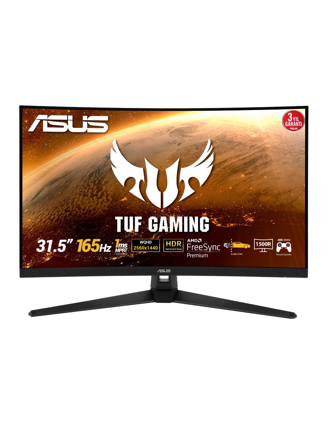ASUS TUF Gaming VG32VQ1BR. Diagonal de la pantalla: 80 cm (31.5"), Resolución de la pantalla: 2560 x 1440 Pixeles, Tipo HD: Quad HD, Tecnología de visualización: LED, Tiempo de respuesta: 1 ms, Relación de aspecto nativa: 16:9, Ángulo de visión, horizontal: 178°, Ángulo de visión, vertical: 178°. Altavoces incorporados. montaje VESA. Color del producto: Negro