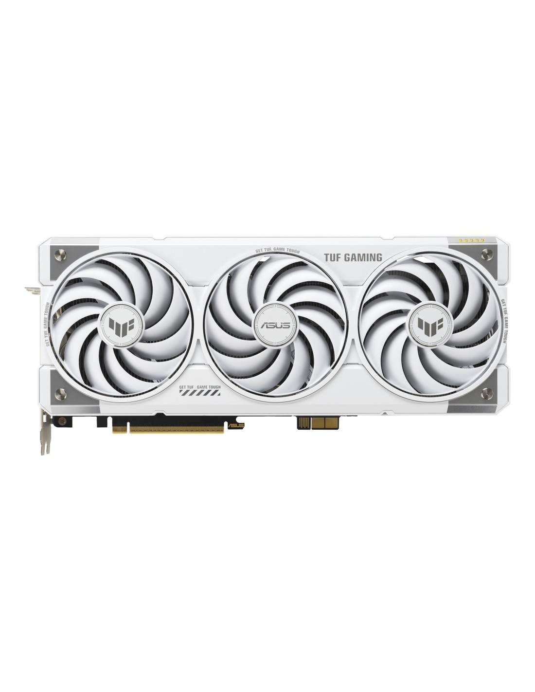 ASUS TUF-RTX5070TI-O16G-BTF-WHITE. Familia de procesadores de gráficos: NVIDIA, Procesador gráfico: GeForce RTX 5070 Ti. Capacidad memoria de adaptador gráfico: 16 GB, Tipo de memoria de adaptador gráfico: GDDR7, Ancho de datos: 256 bit. Máxima resolución: 7680 x 4320 Pixeles. Versión OpenGL: 4.6. Tipo de interfaz: PCI Express 5.0. Tipo de enfriamiento: Activo, Número de ventiladores: 3 Ventilador(es), Iluminación de color: Multi