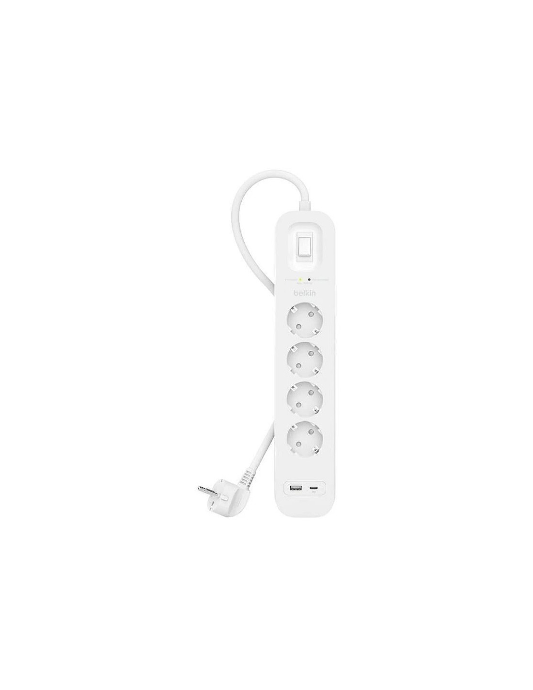 Provista de 1 puerto USB-C y 1 puerto USB-A. Mejora tu productividad con los puertos USB-C y USB-A que te ofrecen una conectividad más flexible, mayor velocidad de carga y menos enredos y desórdenes en tu escritorio. La regleta con protección contra sobretensiones con 4 enchufes y puertos USB-C y USB-A de Belkin incluye soportes para montaje en pared y un cable de corriente de 2 m.