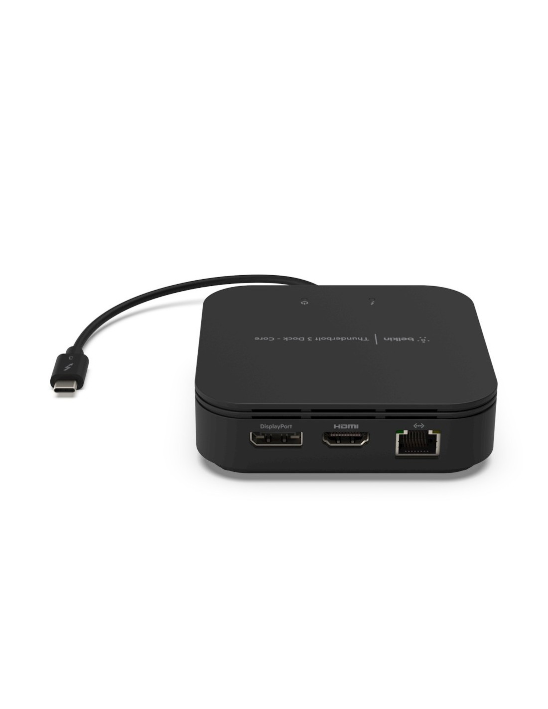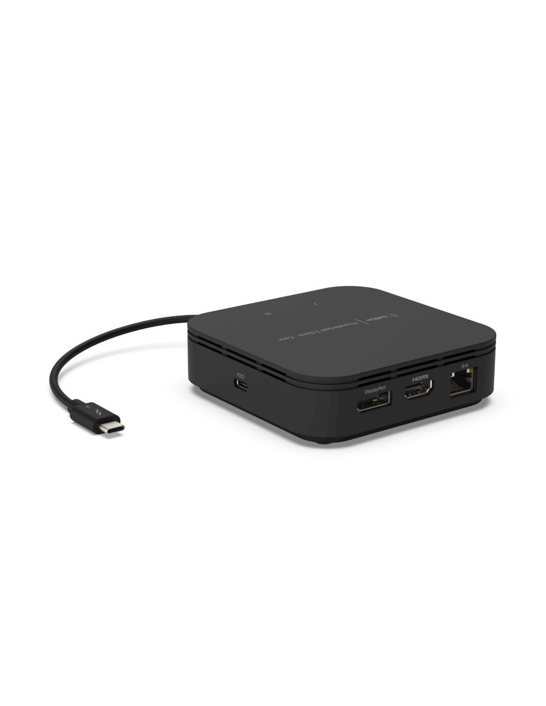 Belkin Thunderbolt 3 Dock Core. Tecnología de conectividad: Alámbrico, Interfaz de host: Thunderbolt 3, Entrega de energía USB (USB Power Delivery) de hasta: 60 W. Color del producto: Negro, Resolución (máxima digital): 7680 x 4320 Pixeles, Máxima velocidad de actualización: 60 Hz. Alimentación: USB. Ancho: 100 mm, Profundidad: 100 mm, Altura: 30 mm. Longitud de cable: 0,2 m