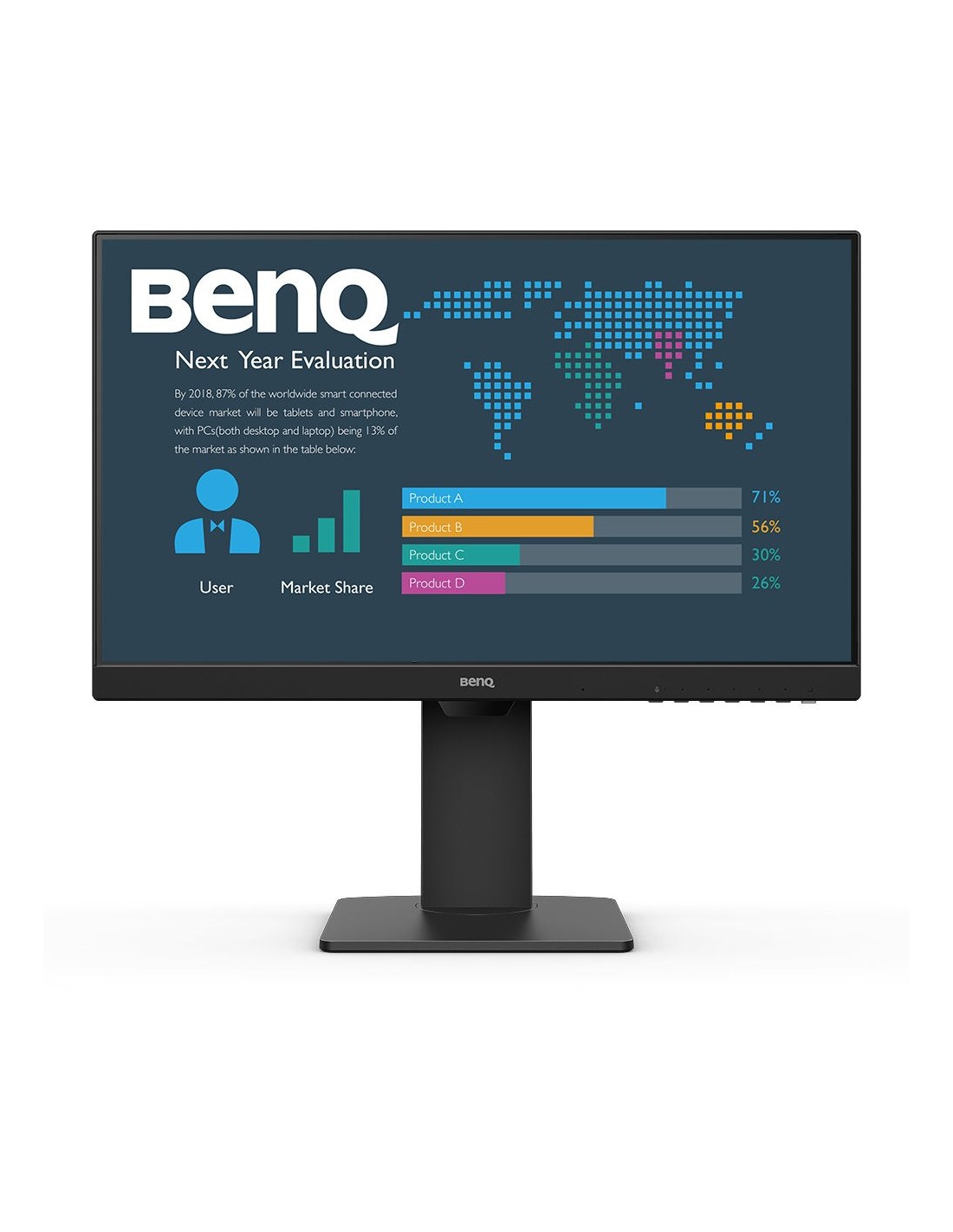 BenQ BL2486TC. Diagonal de la pantalla: 60,5 cm (23.8"), Resolución de la pantalla: 1920 x 1080 Pixeles, Tipo HD: Full HD, Tiempo de respuesta: 5 ms, Relación de aspecto nativa: 16:9, Ángulo de visión, horizontal: 178°, Ángulo de visión, vertical: 178°. Altavoces incorporados. Conector USB incorporado, Versión de conector USB: 3.2 Gen 1 (3.1 Gen 1). montaje VESA, Ajustes de altura. Color del producto: Negro