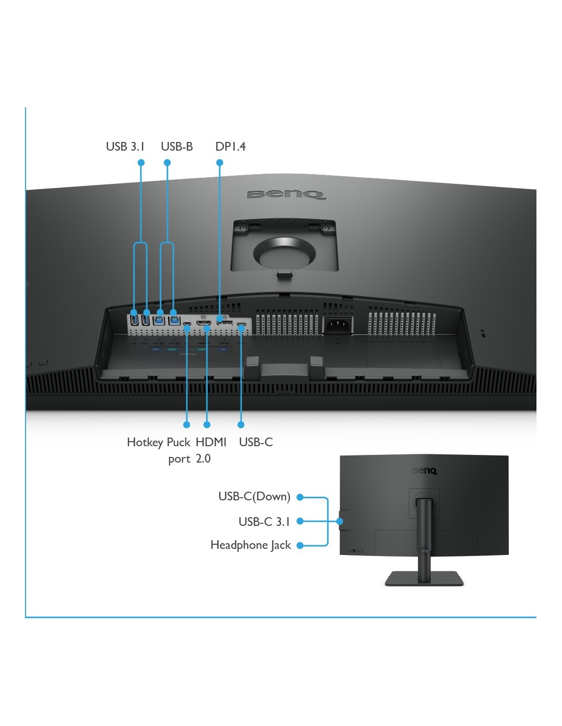 BenQ PD3205U. Diagonal de la pantalla: 80 cm (31.5"), Resolución de la pantalla: 3840 x 2160 Pixeles, Tipo HD: 4K Ultra HD, Tecnología de visualización: LCD, Tiempo de respuesta: 5 ms, Relación de aspecto nativa: 16:9, Ángulo de visión, horizontal: 178°, Ángulo de visión, vertical: 178°. Altavoces incorporados. Conector USB incorporado. montaje VESA, Ajustes de altura. Color del producto: Negro