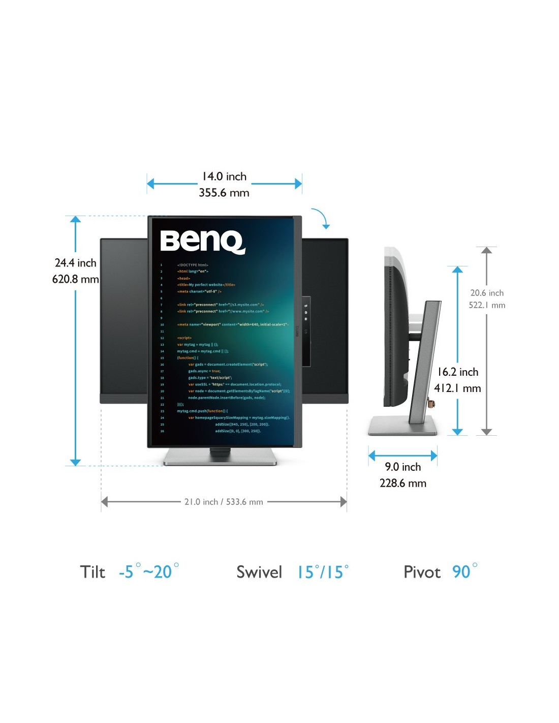 BenQ RD240Q. Diagonal de la pantalla: 61,2 cm (24.1"), Resolución de la pantalla: 2560 x 1600 Pixeles, Tipo HD: WQXGA, Tecnología de visualización: LCD, Superficie de la pantalla: Antideslumbrante, Tiempo de respuesta: 5 ms, Relación de aspecto nativa: 16:10, Ángulo de visión, horizontal: 178°, Ángulo de visión, vertical: 178°. Altavoces incorporados. Conector USB incorporado, Versión de conector USB: 3.2 Gen 1 (3.1 Gen 1). montaje VESA, Ajustes de altura. Color del producto: Negro