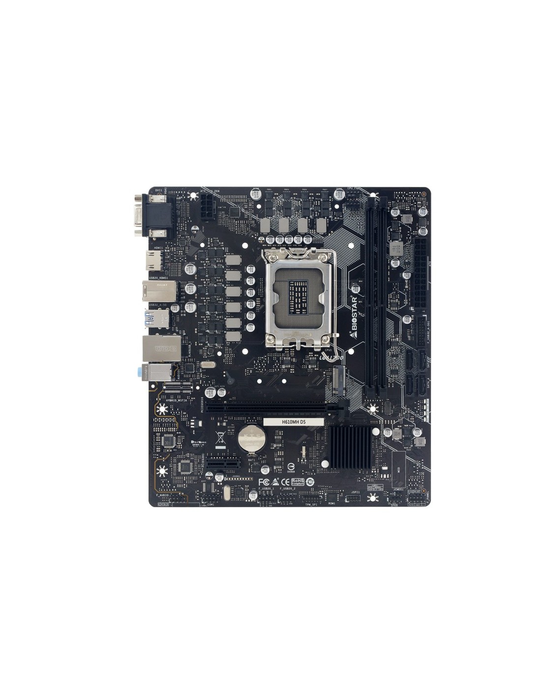 Biostar H610MH D5, Intel, LGA 1700, Intel® Celeron®, Intel® Core™ i3, Intel Core i3 12th Gen, Intel® Core™ i5, Intel Core i5..., DDR5-SDRAM, 96 GB, DIMM