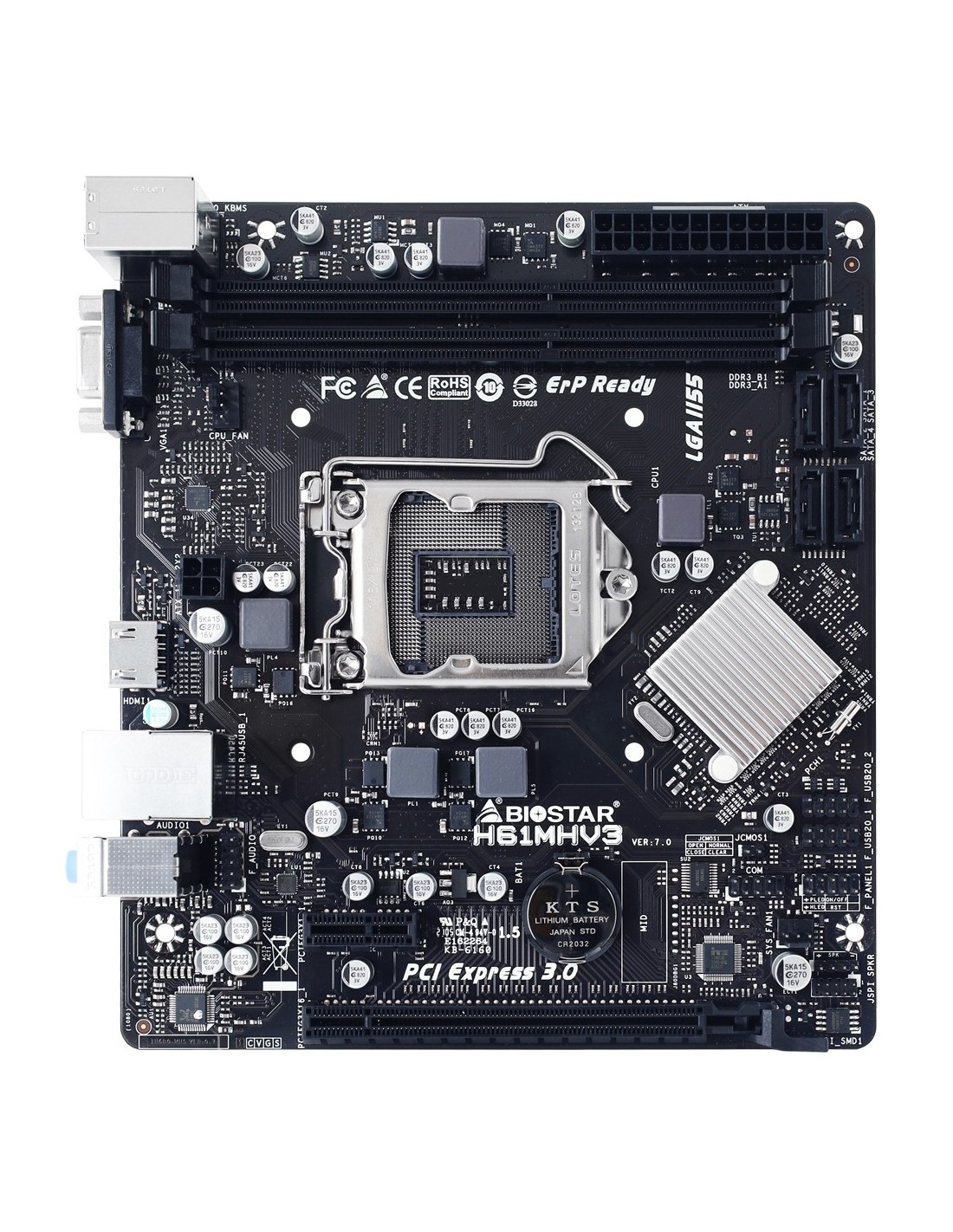 Biostar H61MHV3, Intel, LGA 1155 (Socket H2), Intel® Celeron®, Intel® Core™ i3, Intel® Core™ i5, Intel® Core™ i7, Intel® Pentium®, LGA 1155 (Socket H2), DDR3-SDRAM, DIMM
