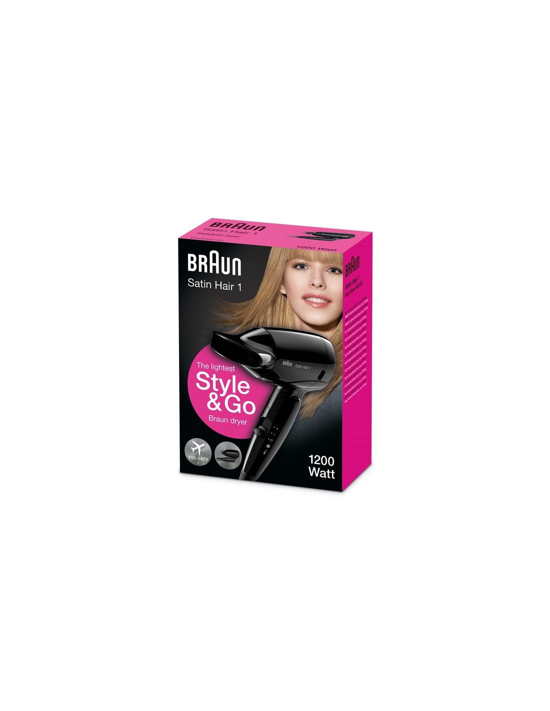 Braun HD130. Color del producto: Negro, Tipo de colgador: Anilla para colgar. Potencia: 1200 W, Voltaje de entrada AC: 100 - 240 V, Frecuencia de entrada AC: 50 - 60 Hz. Peso: 350 g. Cantidad por paquete: 1 pieza(s), Ancho del paquete: 73 mm, Profundidad del paquete: 141 mm. Peso del envase completo: 2,48 kg, Cantidad por caja: 5 pieza(s)