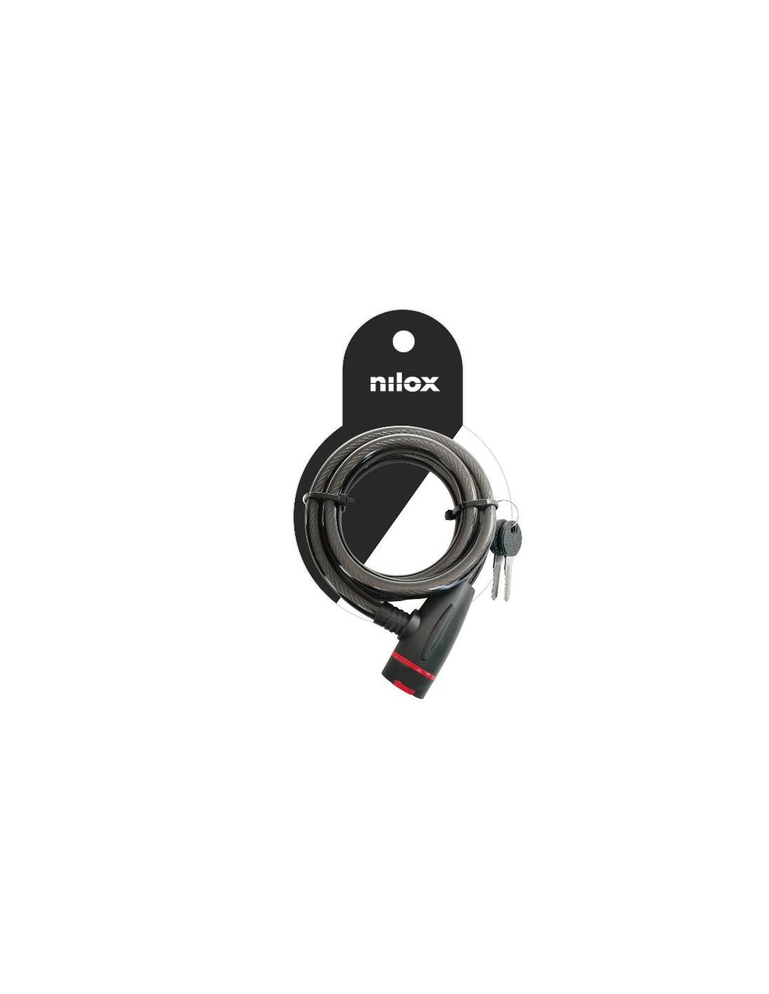 Nilox NXPLCABLELOCK. Tipo: Candado, Color del producto: Negro. Material: Acero inoxidable. Ancho: 12 mm, Profundidad: 12 mm, Longitud: 1300 mm. Cantidad por paquete: 1 pieza(s)