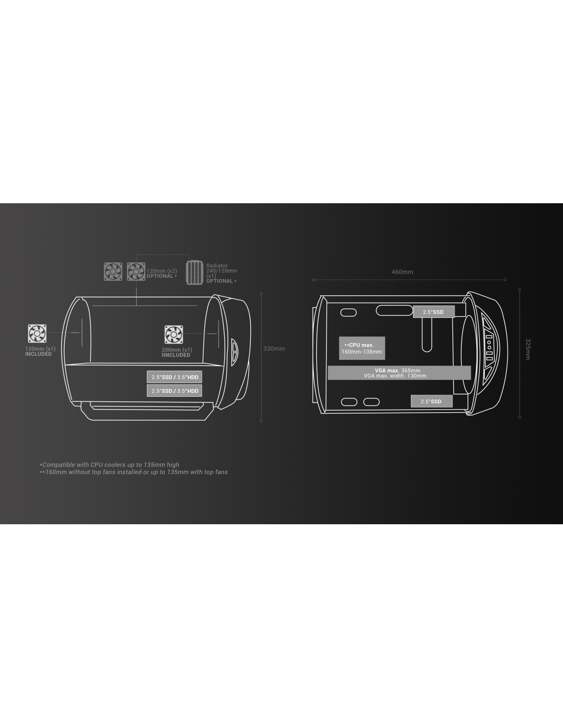 CAJA GAMING MC-CYLON Rompe con lo establecido. La MC-CYLON reinventa tu setup con un diseño inspirado en turbinas de alto rendimiento y una estética gaming única. Su espectacular ventilador frontal RGB Chroma de 200mm y ventilador trasero de 120mm preinstalados, diseño OpenView con ventana superior curvada y estructura compacta Micro-ATX combinan funcionalidad avanzada con un estilo rompedor. Una caja diseñada para destacar tanto en rendimiento como en presencia.