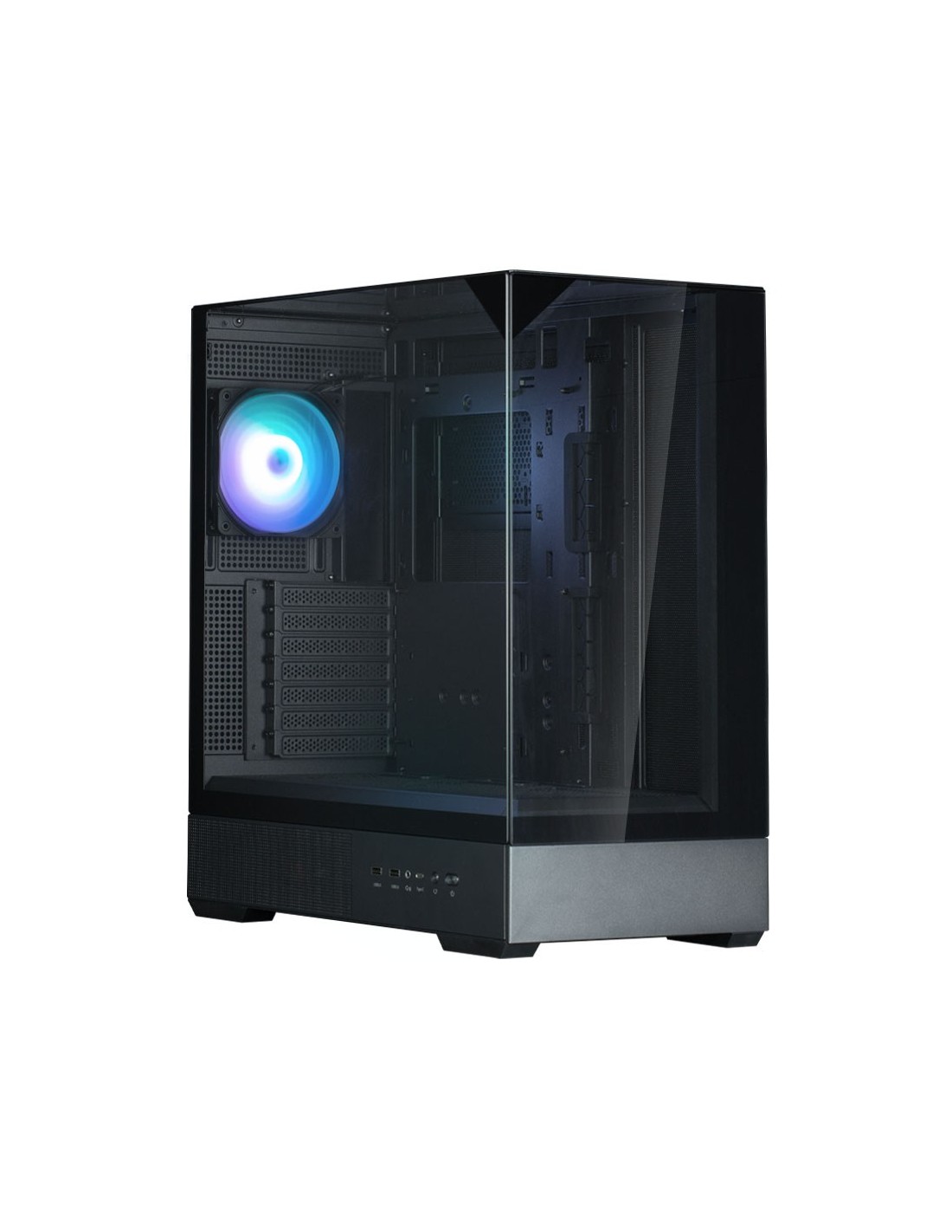 Zalman P40 Prism Black. Factor de forma: Midi Tower, Tipo: PC, Color del producto: Negro. Diámetro de ventiladores secundarios soportados: 120 mm, Ventiladores traseros instalados: 1x 120 mm, Diámetro de ventiladores traseros soportados: 120 mm. Tamaños de disco duro soportados: 2.5,3.5". Ancho: 235 mm, Profundidad: 452 mm, Altura: 495 mm. País de origen: Corea del Sur