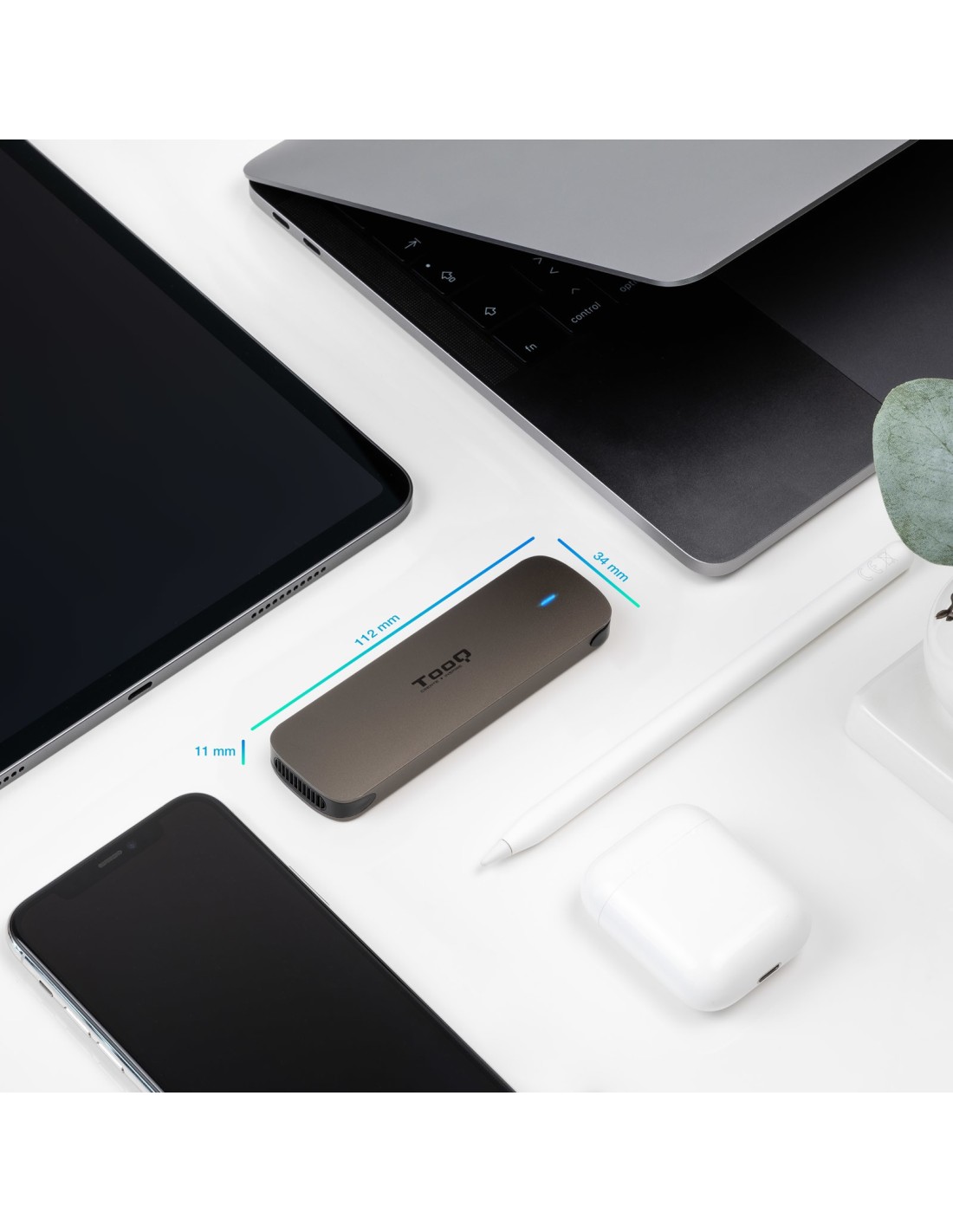 TooQ Caja Externa para SSD M.2 NGFF, Marrón. Tipo de producto: Caja externa para unidad de estado sólido (SSD). Número de unidades de almacenamiento compatibles: 1, Tamaño de la unidad de almacenamiento: M.2, Interfaces de disco de almacenamiento soportados: SATA. Velocidad de transferencia de datos: 5 Gbit/s. Color del producto: Marrón. Conector USB: USB Tipo C