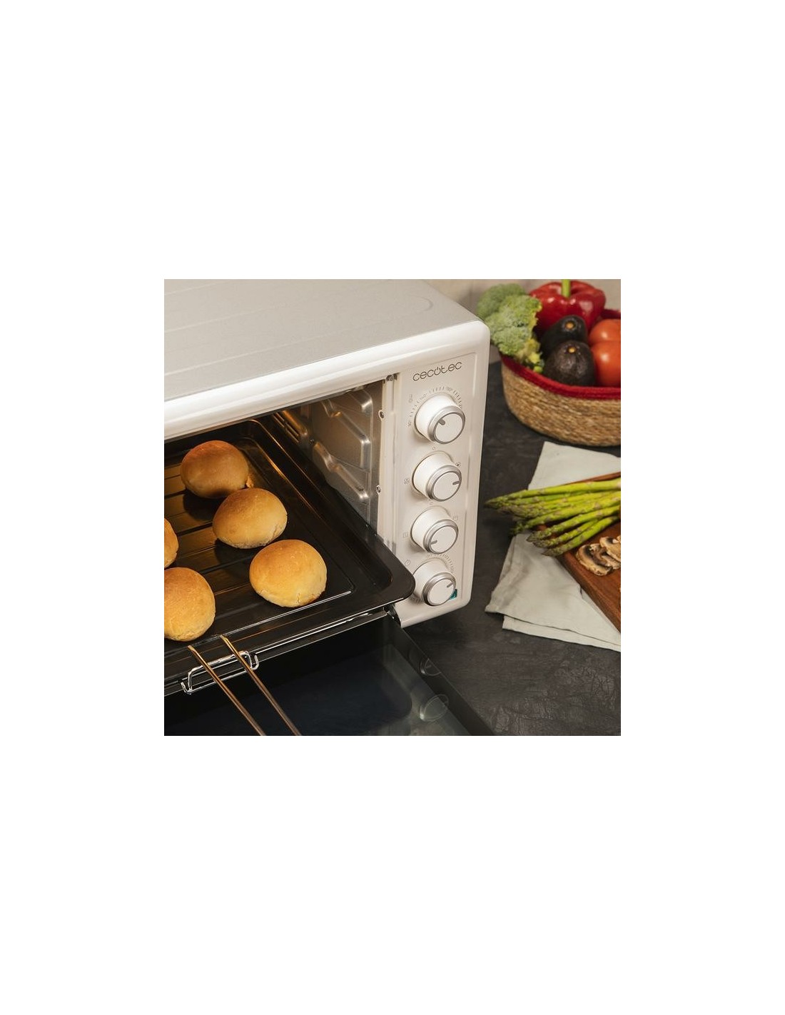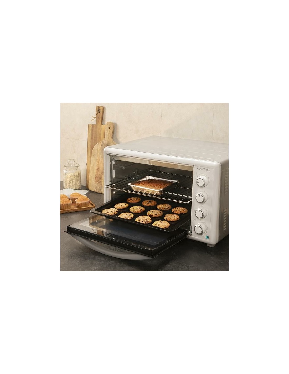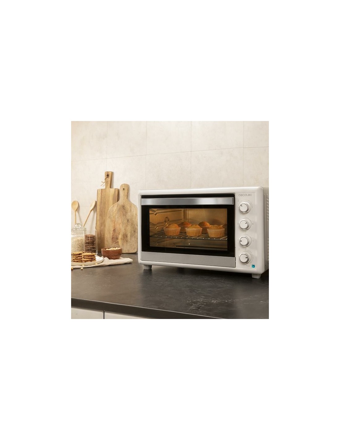 Cecotec Bake&Toast 6090. Tamaño del horno: Medio, Tipo de horno: Horno eléctrico, Total capacidad interior, horno (s): 60 L. Tipo de instalación: Encimera, Color del producto: Blanco, Tipo de control: Giratorio