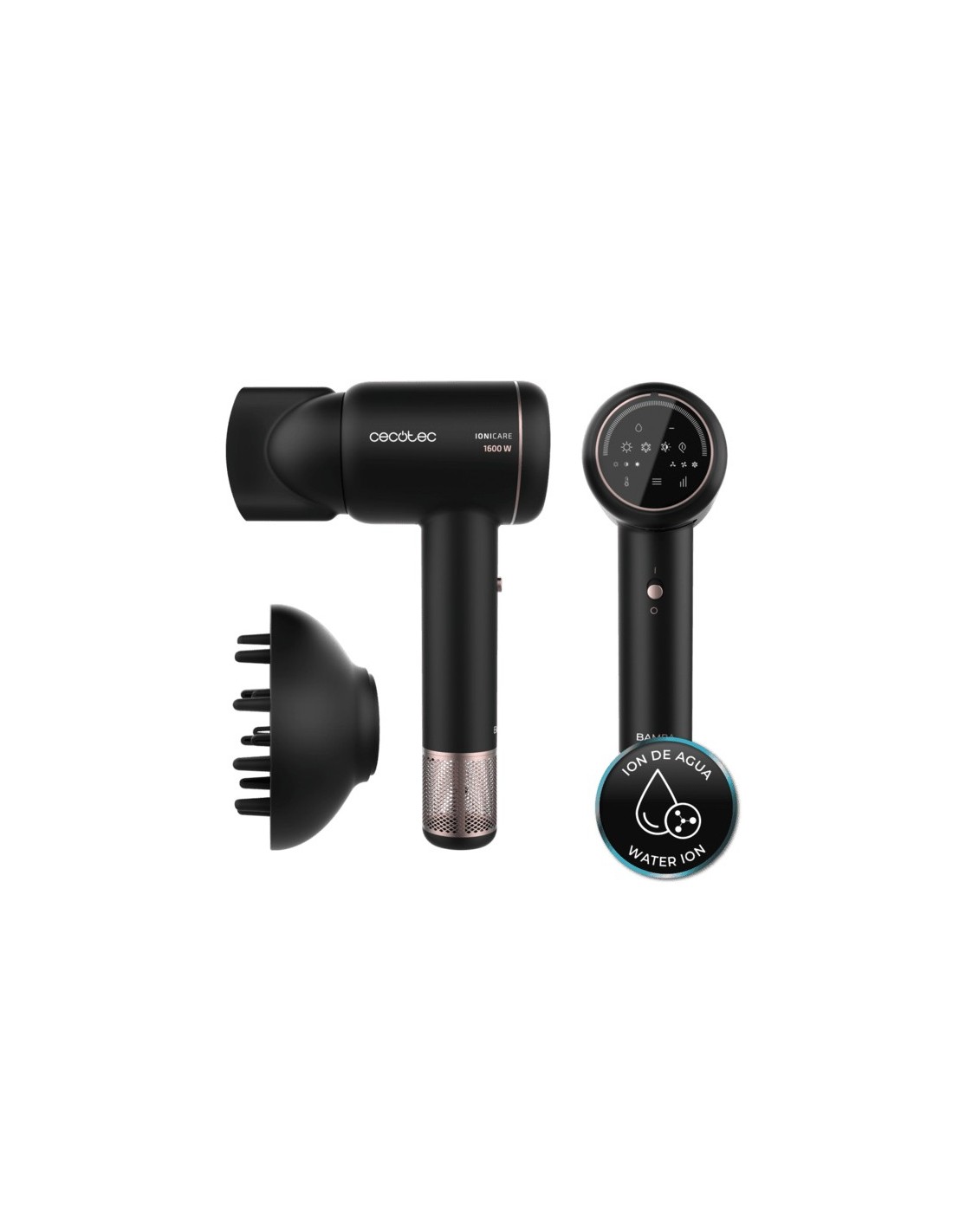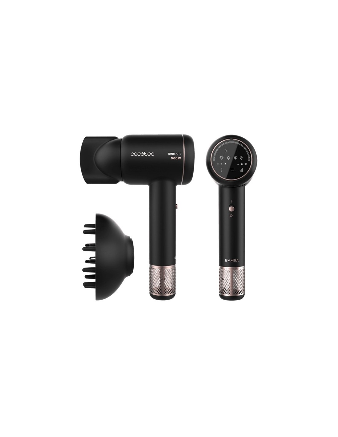 Cecotec Bamba IoniCare RockStar Ion Touch. Tipo de motor: CC. Color del producto: Negro, Longitud del cable: 1,8 m, Tipo de control: Botones, Tocar. Potencia: 1600 W, Voltaje de entrada AC: 220 - 240 V. Ancho: 170 mm, Profundidad: 130 mm, Altura: 300 mm. Cantidad por paquete: 1 pieza(s)