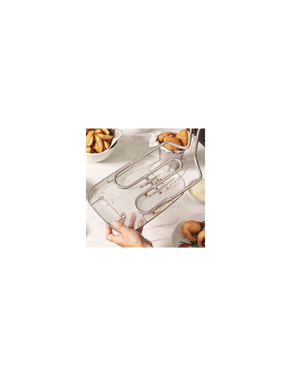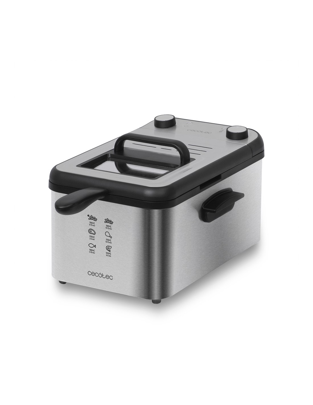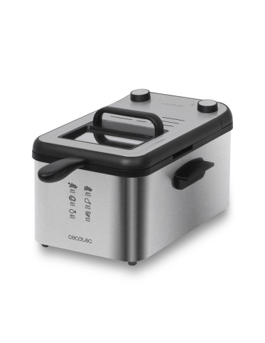 CleanFry Infinity 3000 Full Inox Cecotec freidora eléctrica CleanFry 3000 Full Inox freidora de 3 litros de capacidad de aceite, filtro OilCleaner, 2400 W, cubeta, cestillo de freír y filtro OilCleaner aptos para lavavajillas, temporizador de 30 minutos y cubeta fabricada en acero de gran calidad. Freidora de alta gama con capacidad de 3 litros de aceite con la que podrás conseguir todo tipo de frituras crujientes para toda la familia. Incluye filtro OilCleaner para mantener el aceite limpio tras cada uso. Cubeta, cestillo de freír y filtro OilCleaner aptos para la limpieza en el lavavajillas. Dispone de 2400 W de potencia máxima para freír de forma rápida y eficaz consiguiendo una fritura perfecta en poco tiempo y utilizando menos aceite. Su cubeta está fabricada en acero de gran calidad y resistencia que previene la oxidación, aumenta la durabilidad y garantiza una mejor limpieza. Tapa de acero con filtro antiolores para evitar molestias en la cocina. Ventana en la tapa para controlar a la perfección el proceso de fritura. Cuenta con un temporizador de 30 minutos para preestablecer fácilmente el tiempo de fritura y lograr los resultados deseados. Temperatura regulable hasta 190 ºC para conseguir los mejores resultados. Totalmente desmontable para facilitar su limpieza y mantenimiento. Diseño elegante con acabados en acero. La cesta de freír cuenta con mango de tacto frío para poder controlar el proceso de fritura y evitar quemaduras. Indicador luminoso y de alcance de temperatura. Protección contra sobrecalentamiento.