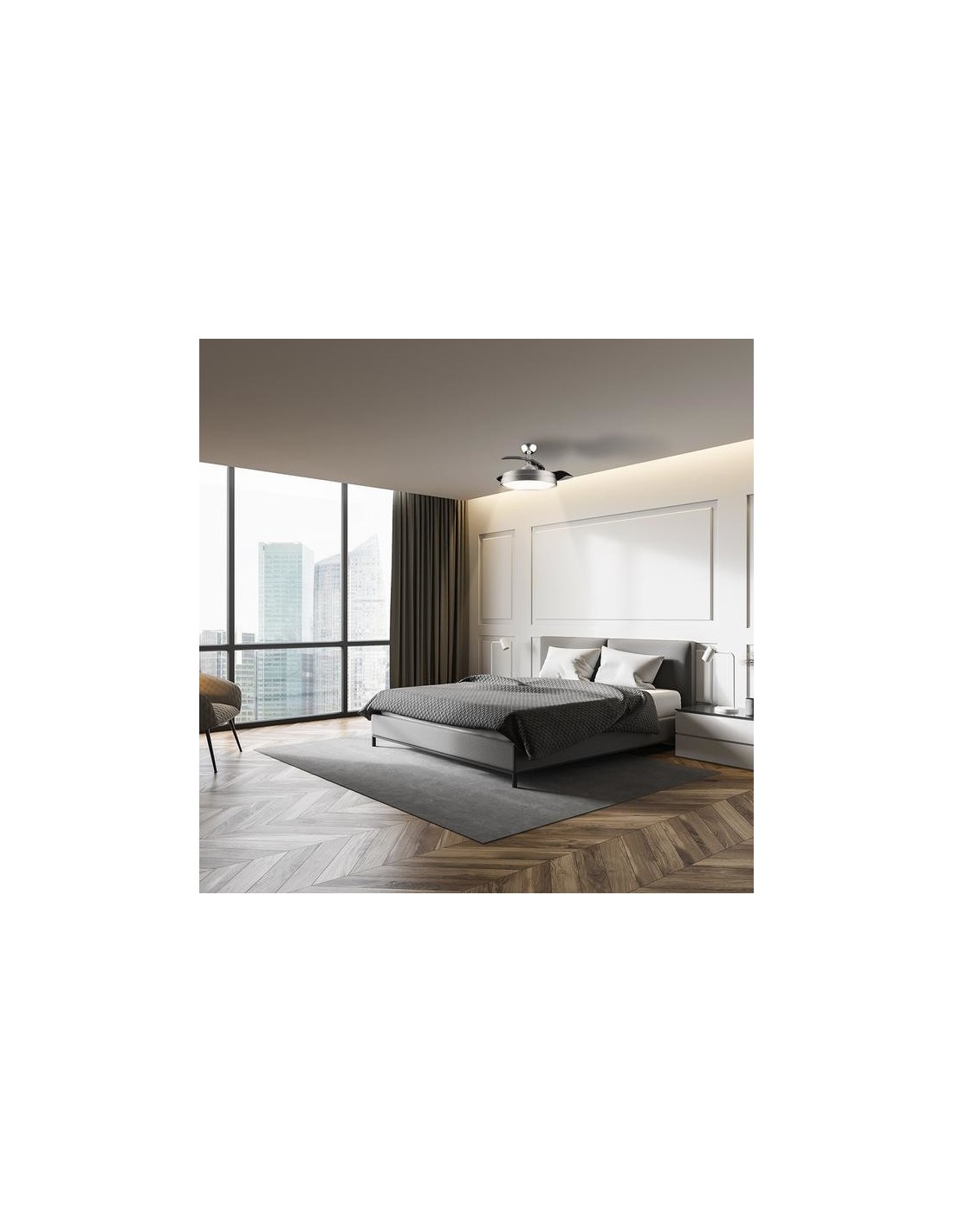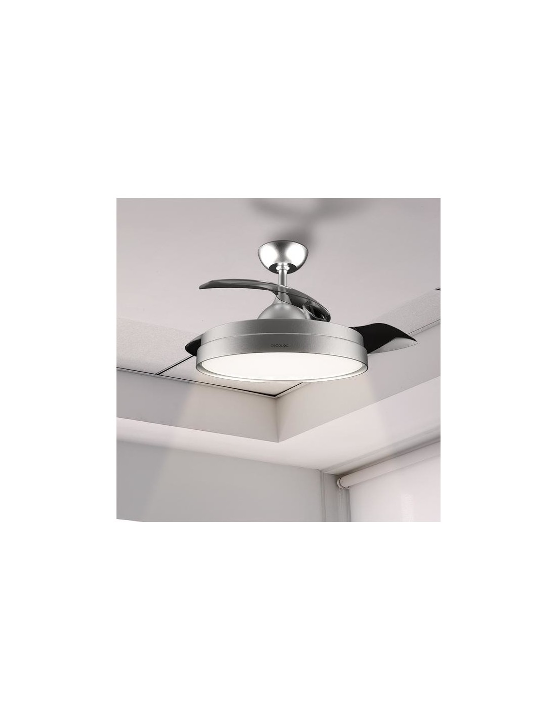 - El ventilador de techo ha sido diseñado para formar un equipo mixto que garantiza una elegante iluminación sin disminuir la eficacia en la distribución del aire. Las aspas son retráctiles por lo que podrás ocultarlas cuando lo desees a diferencia de otros ventiladores.