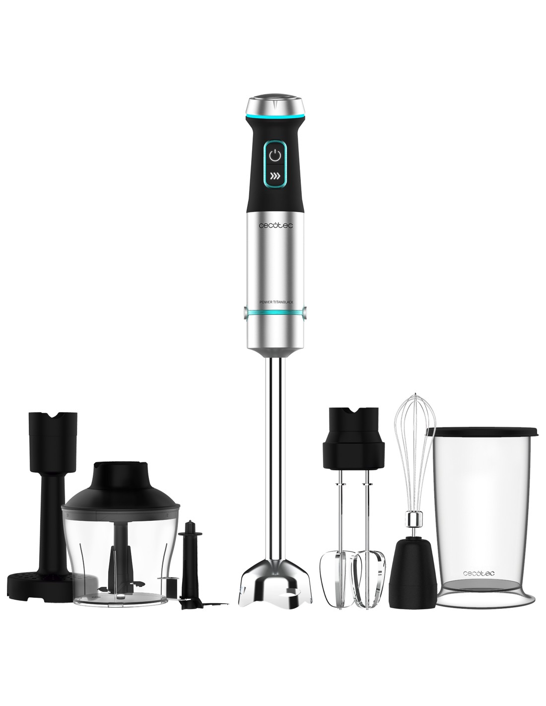 Cecotec Power TitanBlack 1200 XL PerfectCream&Crush. Tipo: Batidora de inmersión, Color del producto: Negro, Verde, Acero inoxidable. Tipo de control: Botones, Capacidad de jarra: 0,8 L, Capacidad del tazón de molido: 0,6 L. Material de la cuchilla: Titanio. Potencia: 1200 W, Fuente de energía: Corriente alterna. Ancho: 68 mm, Profundidad: 68 mm, Altura: 480 mm