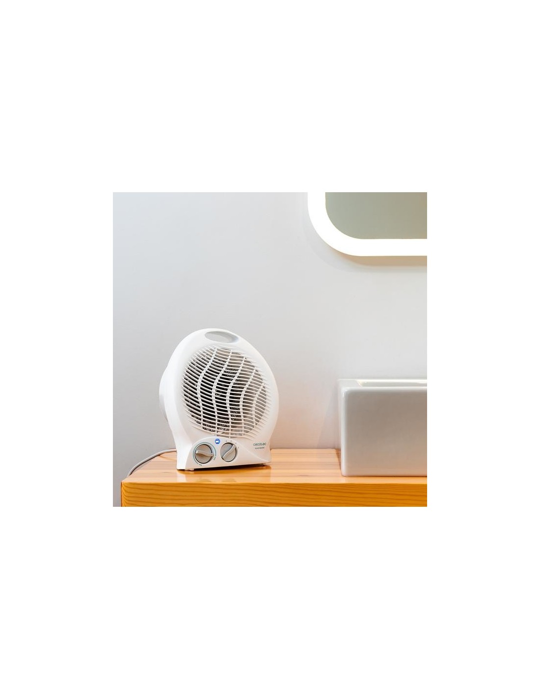 Cecotec Ready Warm 9790 Force. Tipo: Ventilador eléctrico. Adecuado para: Interior, Opciones de colocación: Escritorio, Piso, Mesa, Color del producto: Blanco. Potencia de calentamiento: 2000 W, Potencia de calentamiento (min): 1000 W, Adecuado para habitaciones hasta: 40 m³. Potencia: 2000 W. Ancho: 140 mm, Profundidad: 210 mm, Altura: 300 mm