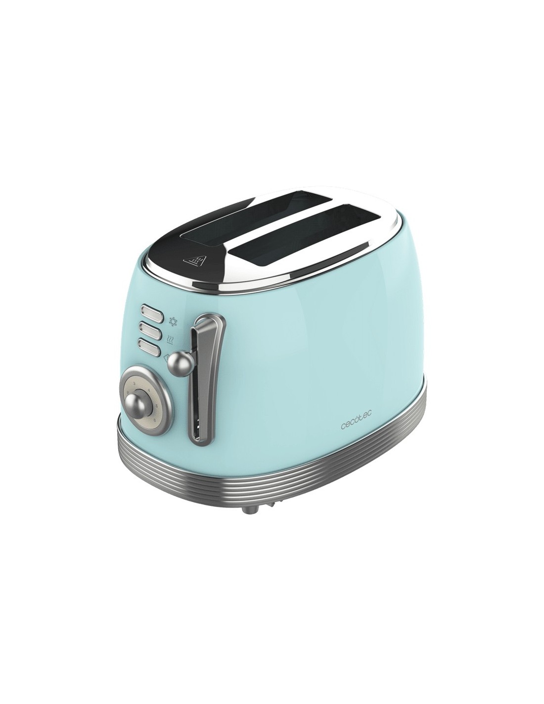 Cecotec Vintage 800, 2 rebanada(s), Azul, Cromo, Acero inoxidable, Botones, Nivel, Giratorio, 850 W, 220 - 240 V