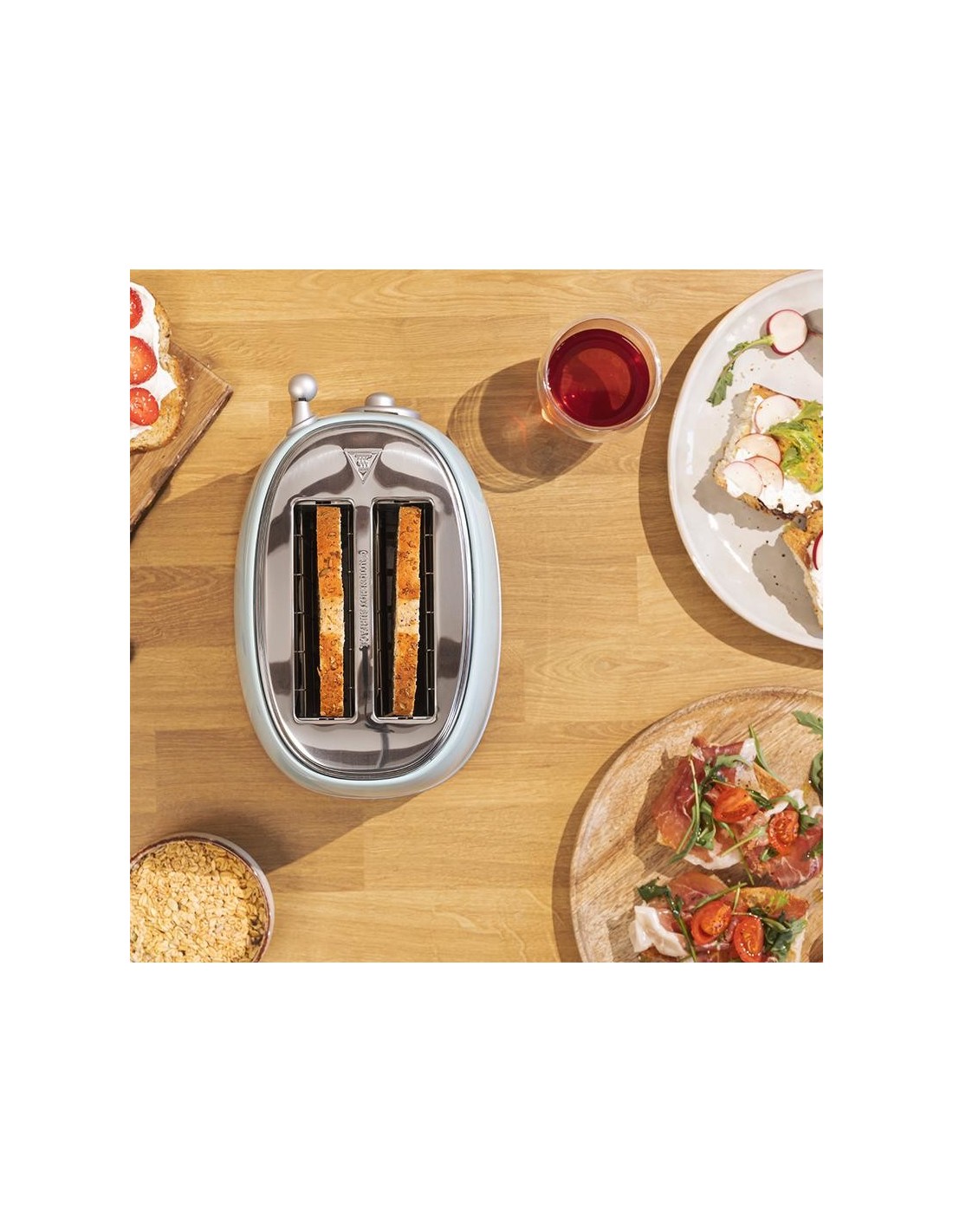 La tostadora cuenta con un un diseño de acero inoxidable lacado en azul con detalles en cromado, perfecto para combinar en tu cocina y darle un toque de estilo.