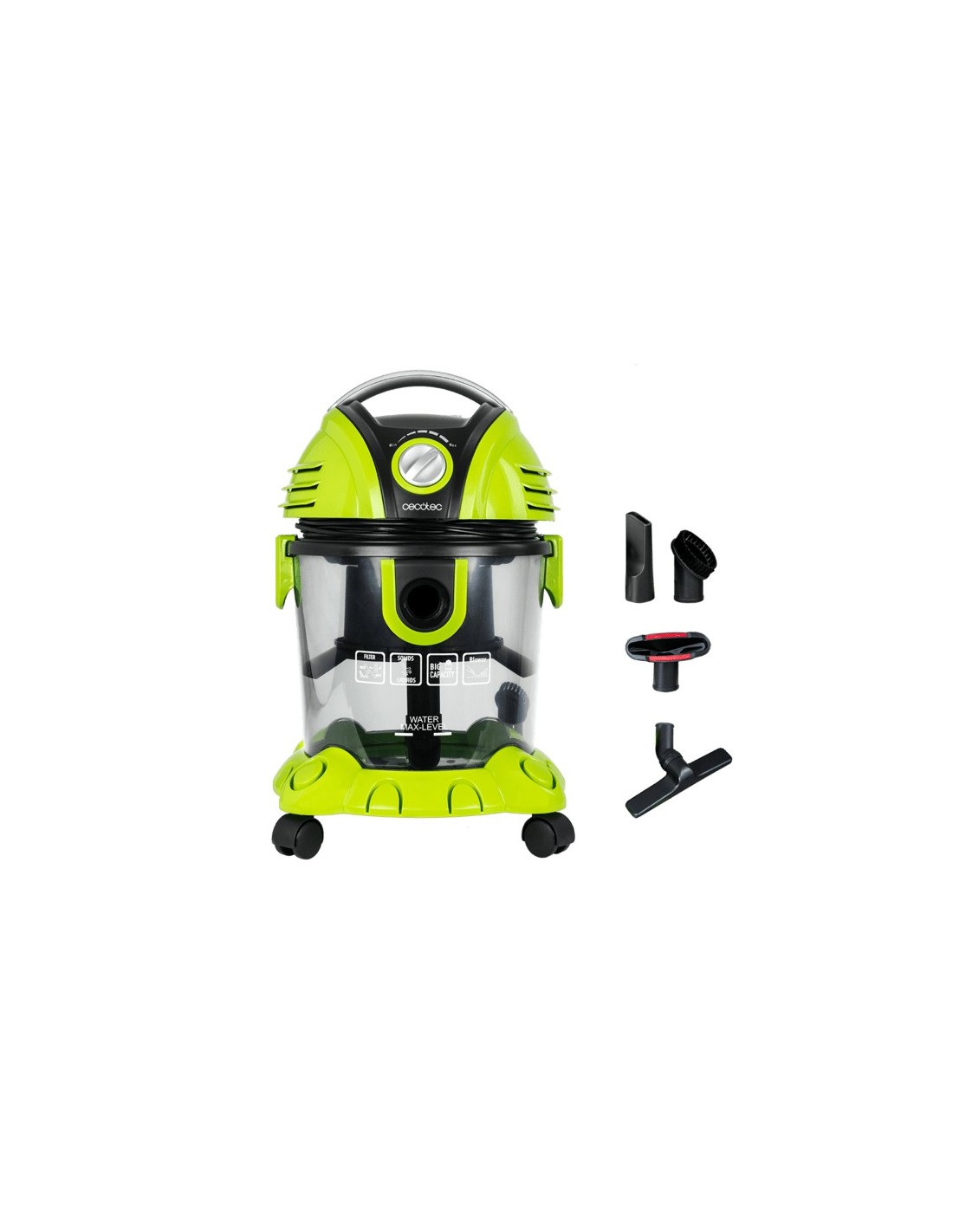 Cecotec Wet&Dry T. Potencia máx. de entrada: 1200 W. Tipo: Aspiradora de tambor, Tipo de limpiador: Seca y húmeda, Tipo de depósito: Sin bolsa, Capacidad para polvo: 15 L. Filtración de aire en aspiradora: HEPA, Método de separación de la suciedad: Filtrado por agua. Color del producto: Negro, Verde claro