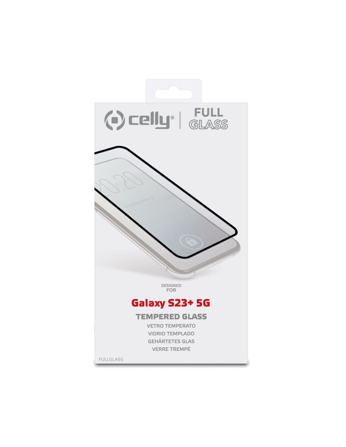 Celly FULL GLASS. Marca compatible: Samsung, Compatibilidad: Galaxy S23+ 5G, Funciones de protección: Resistente a rayones. Material: Vidrio templado, Color del producto: Negro, Transparente. Cantidad por paquete: 1 pieza(s)