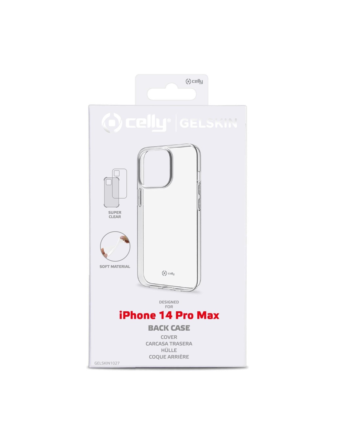 Celly Gelskin. Tipo de funda: Funda, Marca compatible: Apple, Compatibilidad: iPhone 14 Pro Max, Tamaño máximo de pantalla: 17 cm (6.7"), Coloración de superficie: Monocromo, Color del producto: Transparente