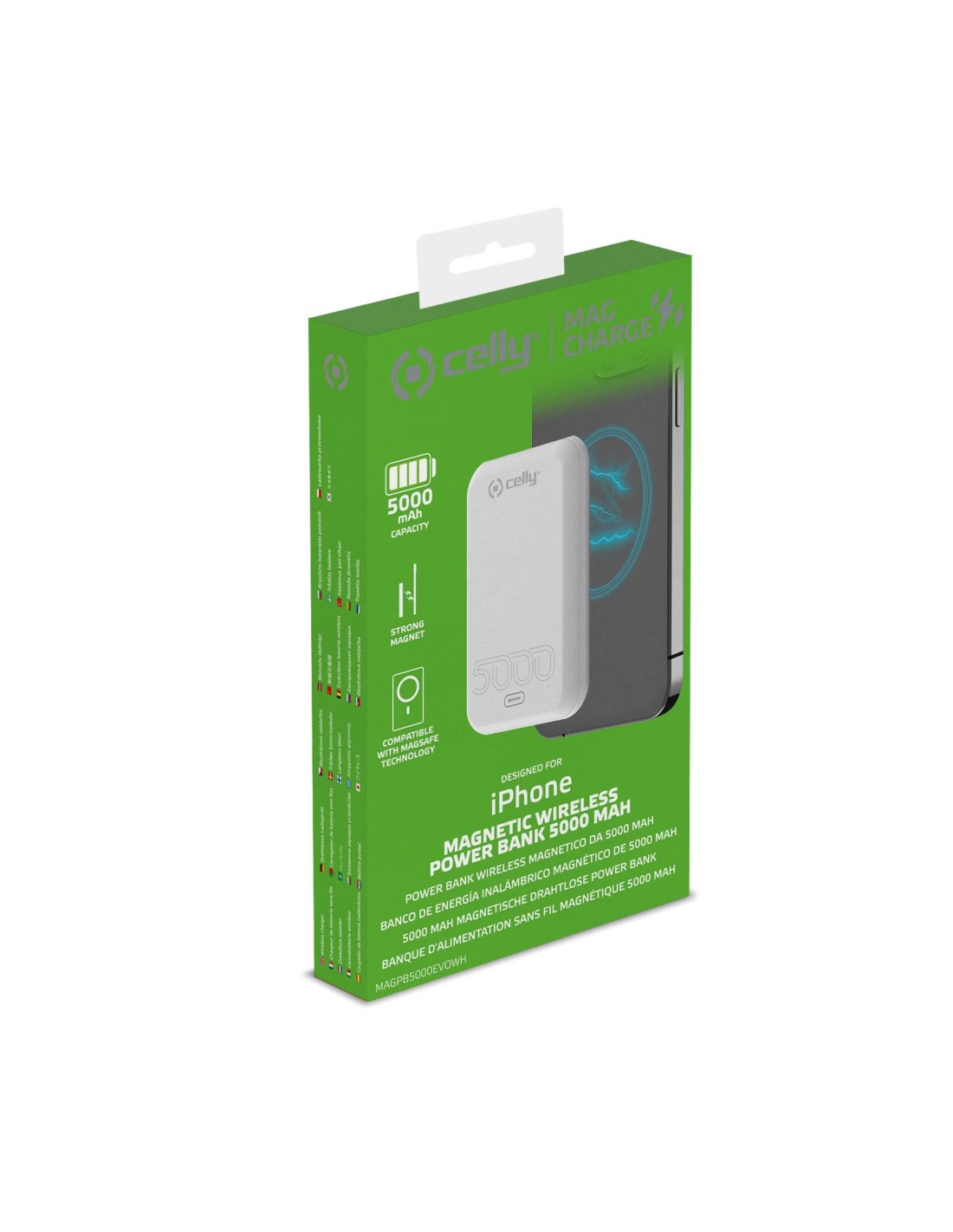 Celly MAGPB5000EVOWH, 5000 mAh, Cargador inalámbrico, Blanco