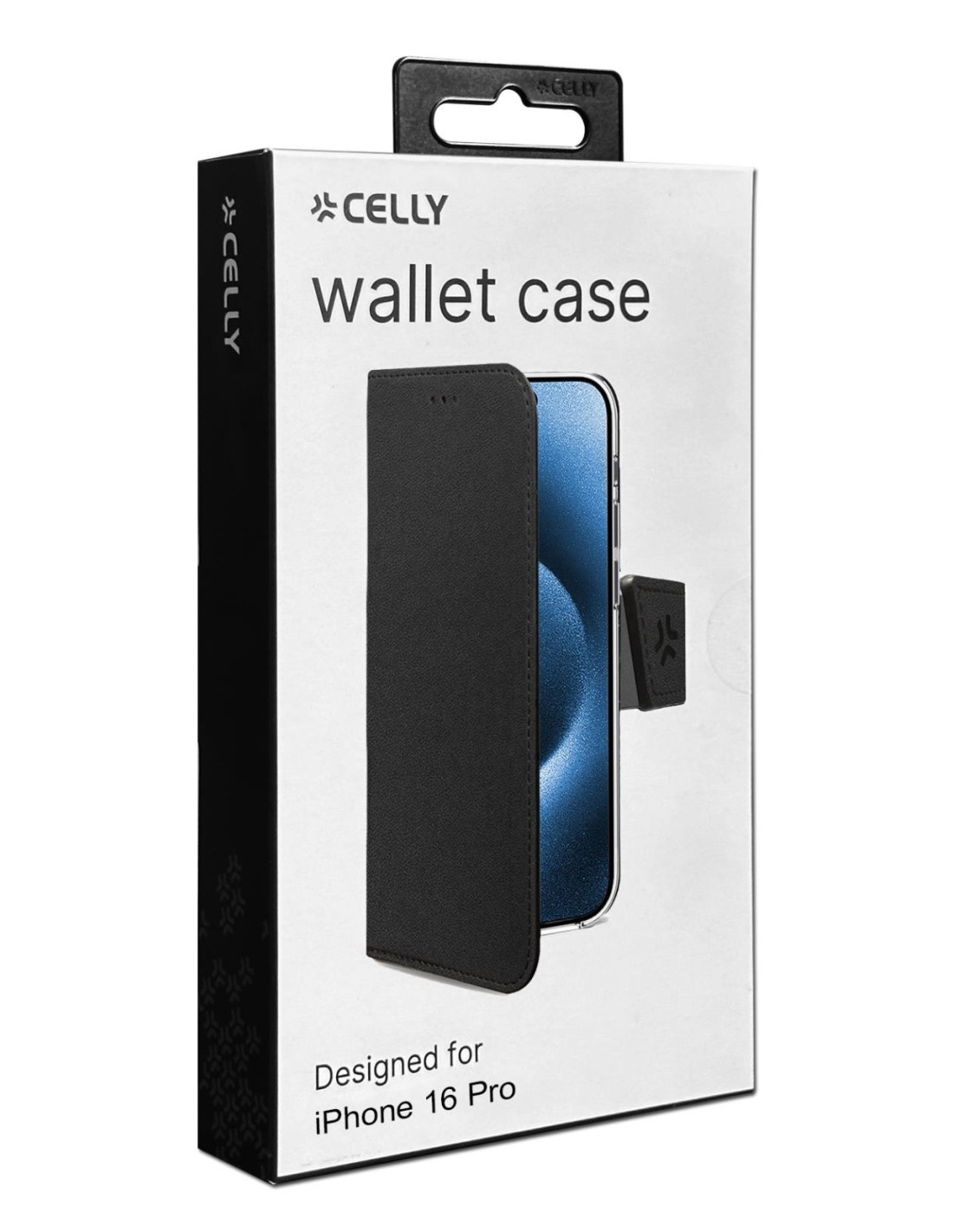 Celly WALLY1079, Funda cartera, Apple, iPhone 16 Pro, 16 cm (6.3"), Negro