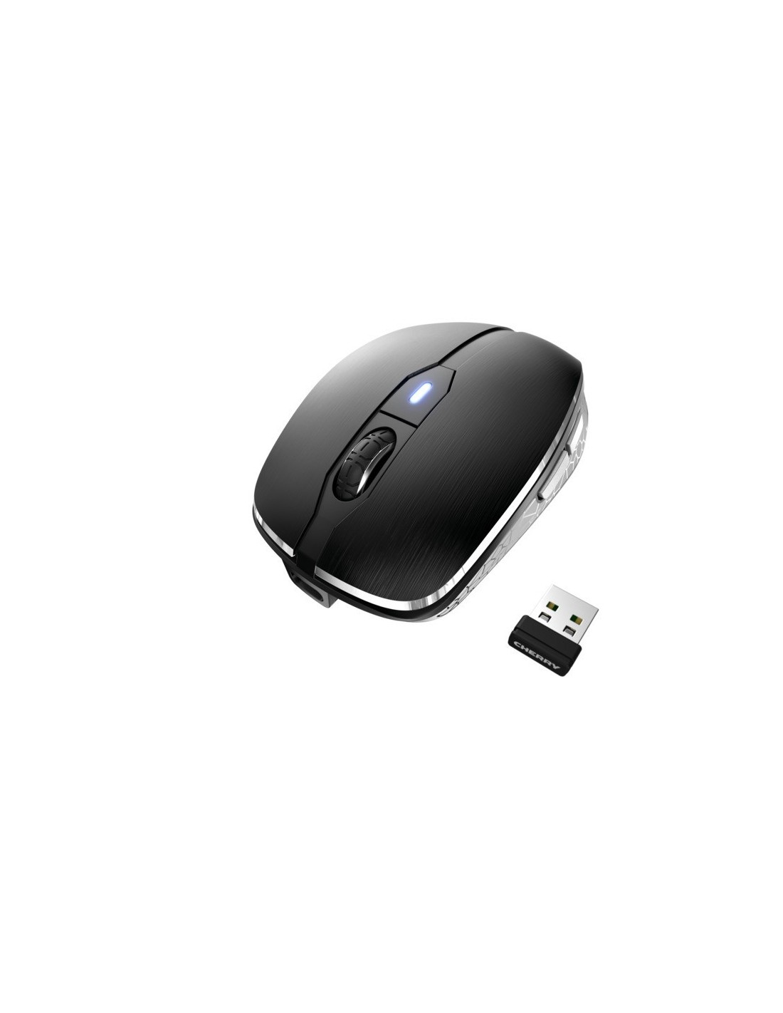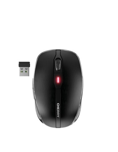El ratón CHERRY MW 8C ADVANCED aúna materiales de alta calidad, un diseño atemporal y la tecnología más moderna en un ratón inalámbrico de primera categoría. Su superficie de aluminio anodizado, en combinación con las piezas laterales de goma y su compacta forma, se acomoda a la perfección a su mano. Ya desde el primer contacto se aprecia que este ratón destaca entre los demás y está destinado a usuarios exigentes. Gracias a su sensor de alta precisión con LED de láser, el ratón funciona prácticamente sobre todas las superficies, incluidas las mesas de cristal. La resolución puede ajustarse en 4 niveles mediante una tecla: 600, 1000, 1600 o 3200 dpi. Por consiguiente, está preparado para su uso en pantallas 4K de alta resolución. La batería integrada de litio puede cargarse fácilmente mediante el cable USB adjunto, incluso mientras está usando el ratón. Gracias a su gran capacidad de 550 mAh, una carga basta para varias semanas de trabajo sin interrupciones. Un LED bicolor de estado le indica en todo momento el estado de la pila, el estado de carga, la resolución seleccionada o el estado de conexión. Al contrario que los ratones comunes, este ratón inalámbrico puede conectarse mediante el receptor USB de radiofrecuencia de 2,4 GHz adjunto o a través de Bluetooth®. Puede conmutar rápidamente entre estos dos modos de conexión mediante un interruptor situado en la base del ratón. Ello permite, p. ej., manejar un ordenador portátil a través de Bluetooth® y además un PC por radiofrecuencia mediante el mismo ratón. Y para conmutar entre ambos dispositivos, solo tiene que accionar el interruptor. La transmisión de los datos se realiza en ambos casos con una encriptación AES 128. Pero el CHERRY MW 8C ADVANCED ofrece además muchas otras funciones y sofisticados detalles con los que seduce al usuario. Una rueda de ratón de vida útil extremadamente larga y con exploración óptica, un bloqueo magnético para el receptor USB y la funda de transporte que adjunta: con todas estas características, este ratón está en condiciones de satisfacer todos sus deseos y resulta perfectamente adecuado tanto para el uso móvil como para el uso fijo.