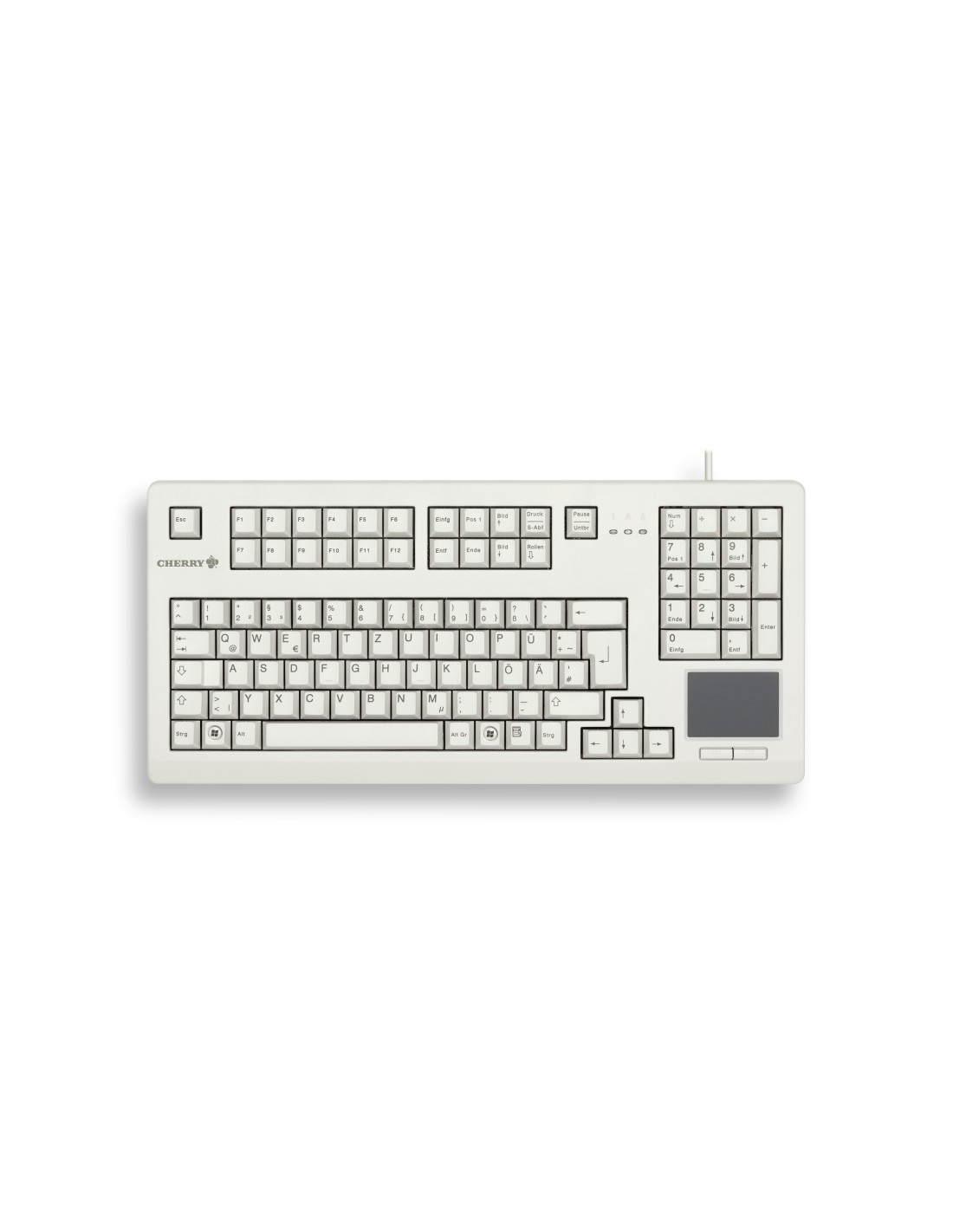 CHERRY TouchBoard G80-11900. Formato del teclado: Completo (100%). Estilo de teclado: Derecho. Tecnología de conectividad: Alámbrico, Interfaz del dispositivo: USB, Interruptor del teclado: Interruptor mecánico, Diseño de teclado: QWERTY, Teclado, cantidad de teclas: 104. Longitud de cable: 1,75 m. Uso recomendado: Industrial. Color del producto: Gris